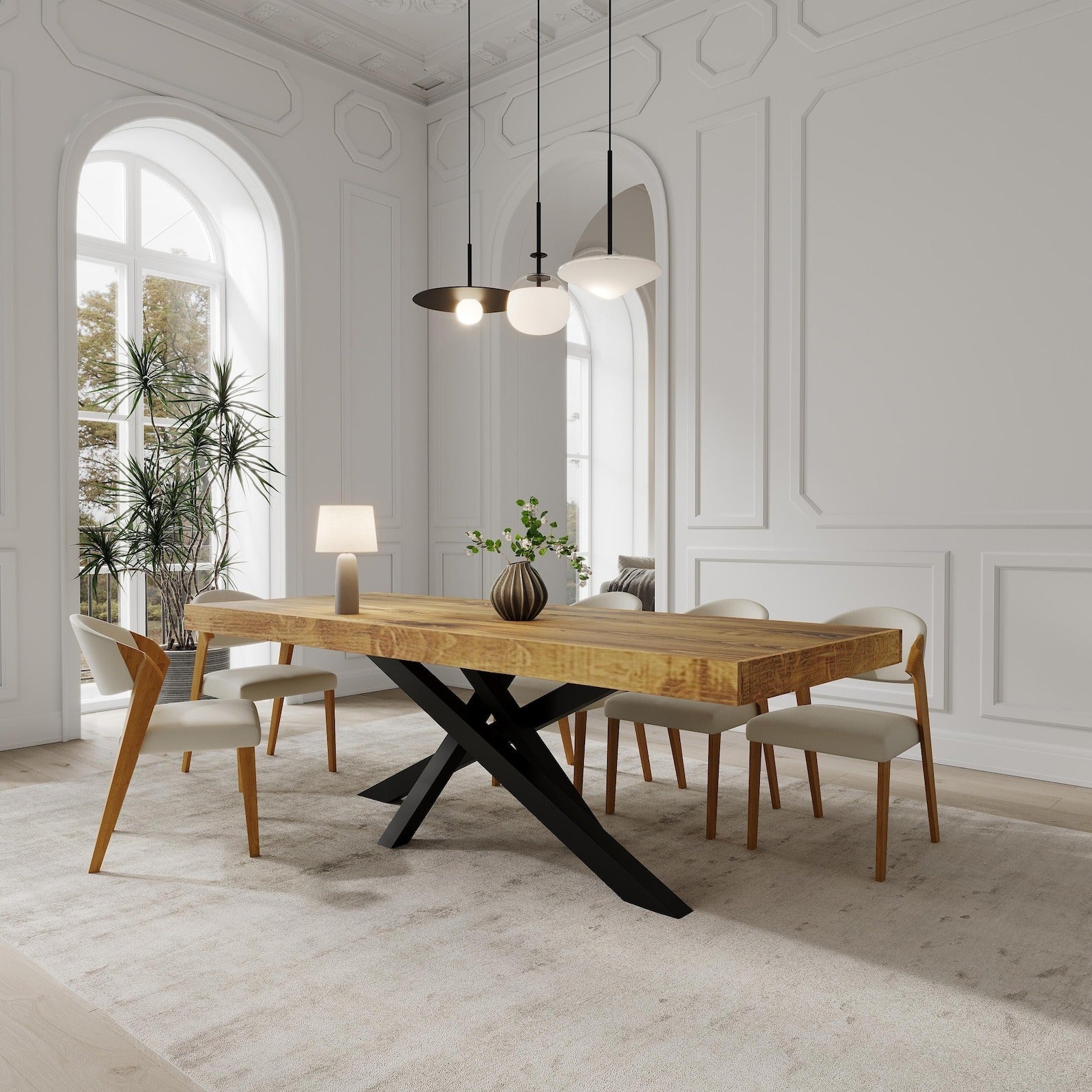 Boston Crossover Dining Table Rustic Solid Wood Dining Table Industrial Straight Edge Dining Table Crossover Steel Base