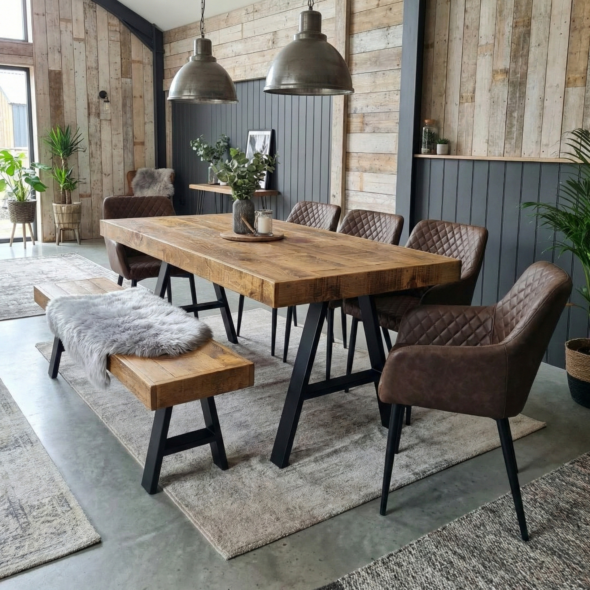 Boston Dining Table A Frame Steel Legs Industrial Rustic Wood