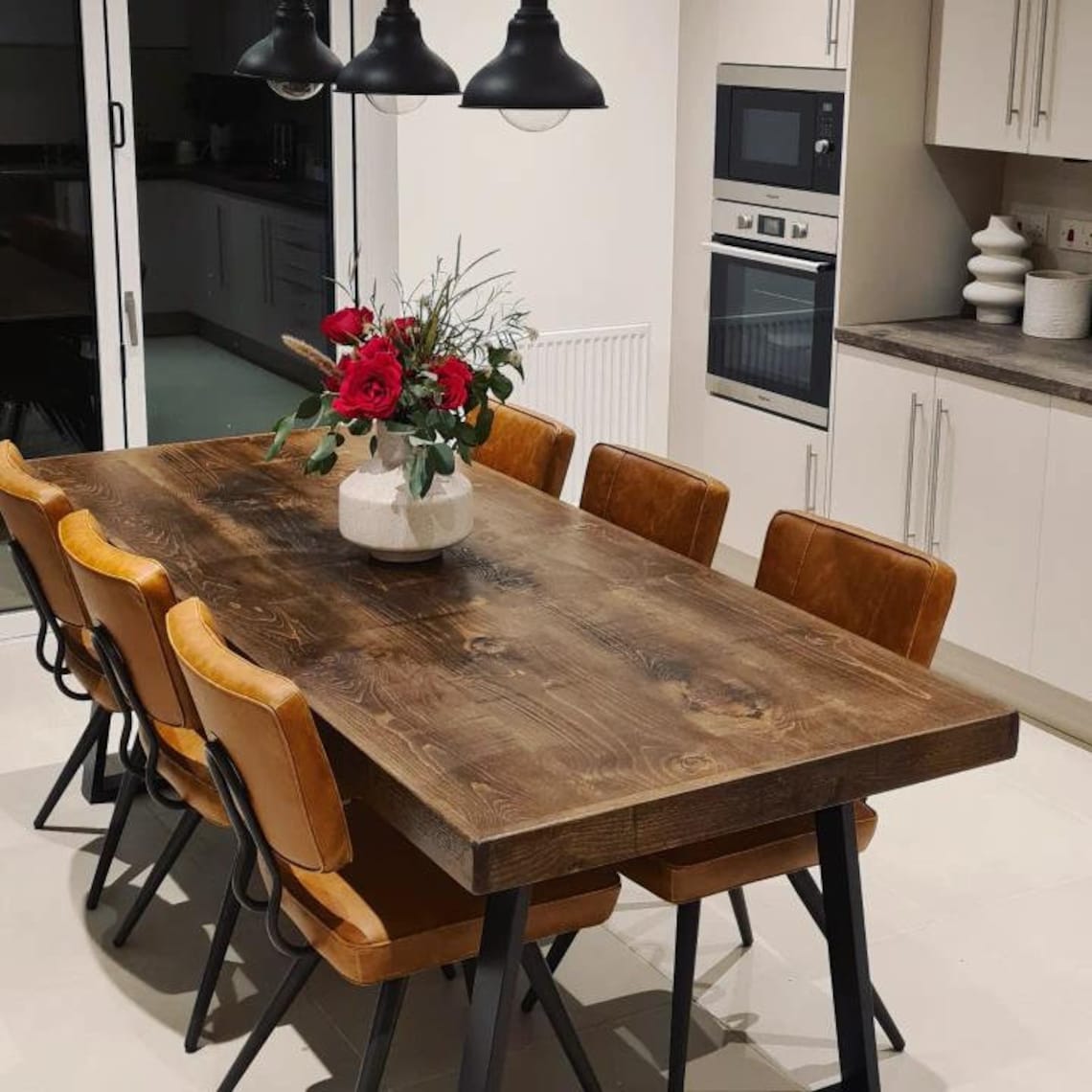 Dining Table Industrial Boston Dine Table Trapezium Frame Steel Legs Industrial Rustic Wood – Handmade Kitchen Table