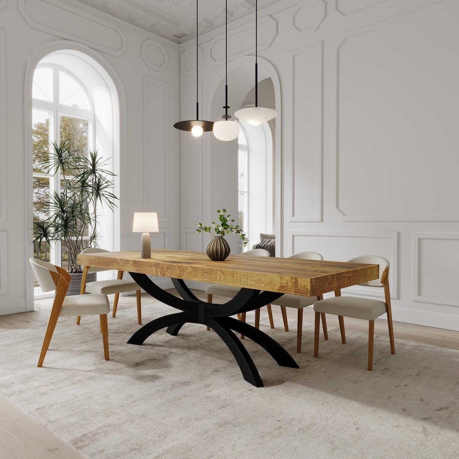 Choose from our selection of Black legs in the following shapes: X-frame, V-frame, A-frame, Trapezium-frame, Square-frame, adding a contemporary twist or a timeless appeal to your dining area. Our tables are thoughtfully designed to comfortably seat different numbers of people, making it easy to find the ideal fit for your needs.