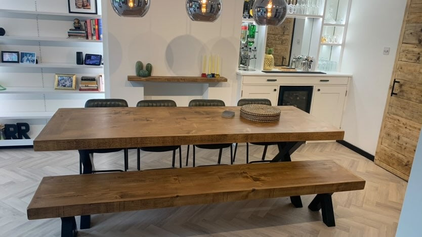 Extra Wide Dining Table Lincoln Dine Table Rustic Farmhouse Rustic Wood Chunky Metal Legs. These Rustic Dining Tables have been carefully handmade in our Lincolnshire workshop, using only the finest materials.