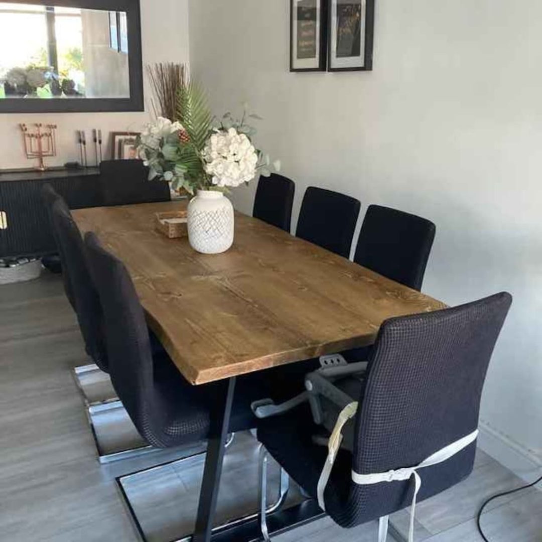 Dine Table Wooden Rustic Dining Table Industrial Live Edge TRAPEZIUM Metal FRAME LEGS Industrial Rustic Wood Cotswold