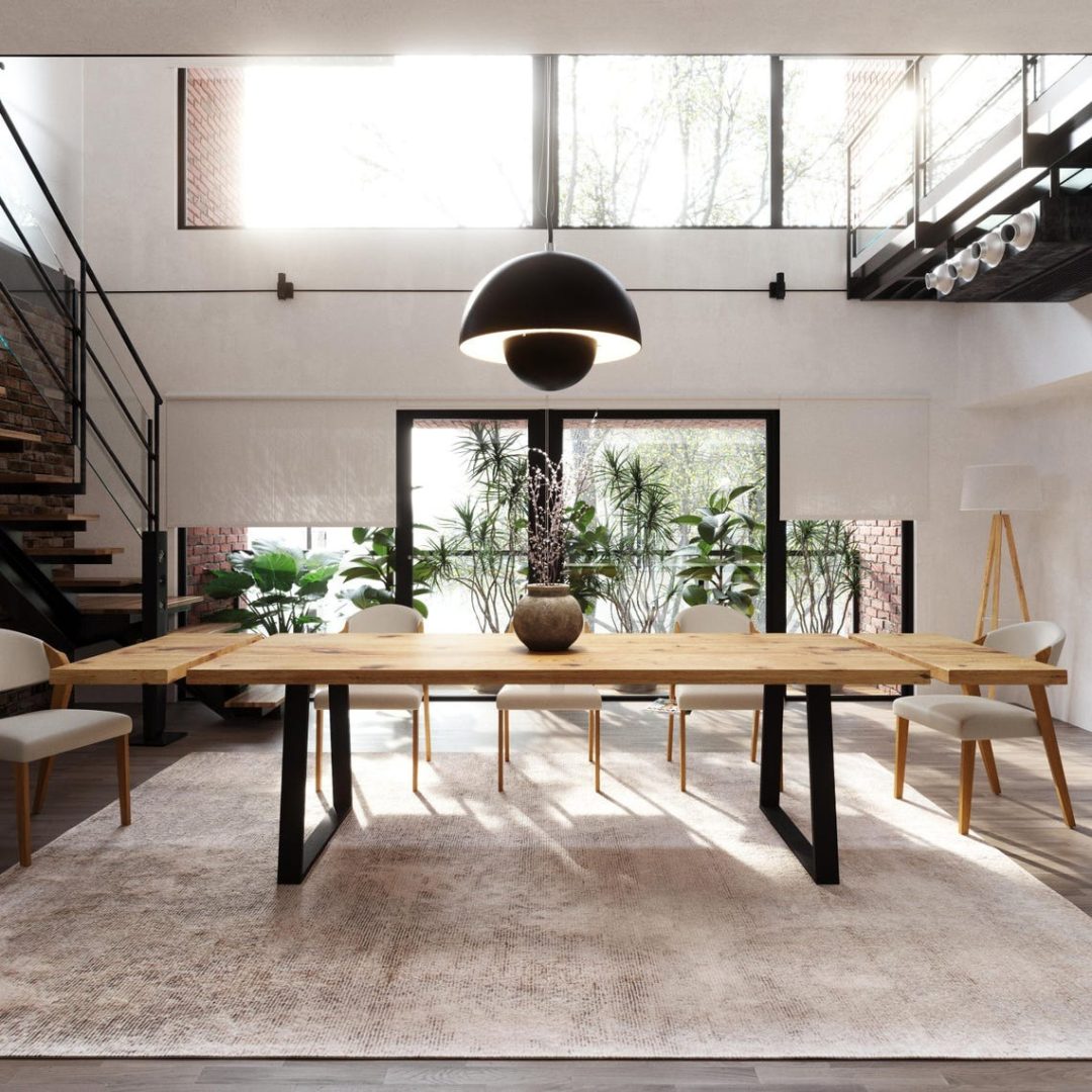 Brigg Dining Table Straight Edge Extendable 2Side Dining Table Kitchen Industrial Rustic Wood, TRAPEZIUM Steel Legs