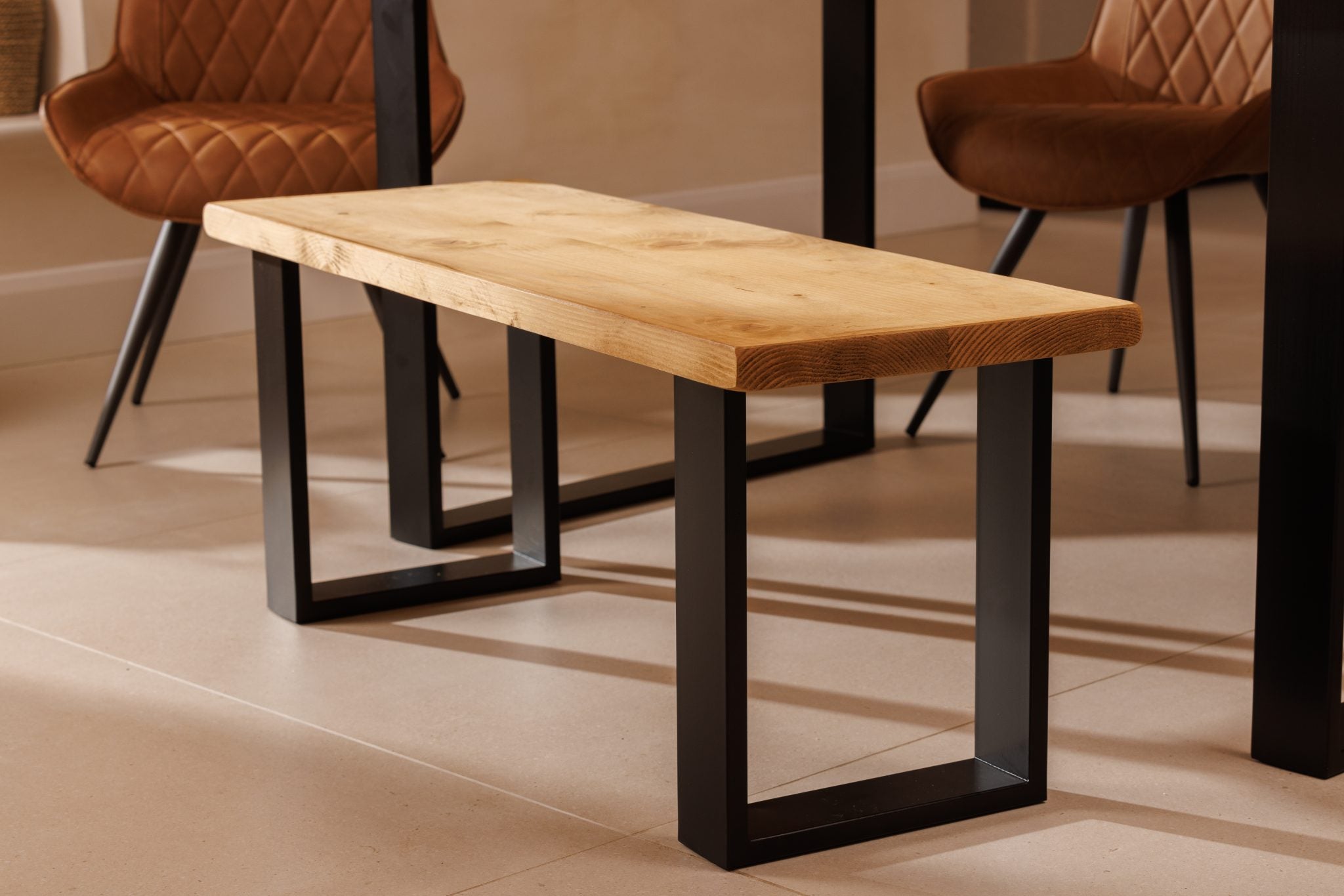 As we use rustic timber boards, each piece of wood will be carefully selected. However no two pieces will ever be the same which brings a unique element to the final product. Each piece of wood may contain any of these characteristics; marks on the wood, slight bows and twists, variation in colour, splits, saw marks, grain patterns, knots, dents and nail holes. We believe that this just adds a little extra character to your furniture. Our tables come protected with a coat of lacquer, this will ensure that you are protected from any stains or messy eaters. Each bench is meticulously crafted using new wood, skill-fully distressed to imitate the organic and irregular edges found in live edge pieces.For those seeking a space-saving solution, we recommend choosing a bench that is 30cm SHORTER than the table length. This allows the bench to conveniently slide underneath the table, optimising your dining area. Please note that this suggestion applies to tables measuring under 200cm. If your table is longer, we kindly ask you to contact us for personalised advice.You have the freedom to customise the length of your bench, ranging from 100cm to 300cm (longer options available upon request), allowing you to select the perfect size to accommodate your desired number of guests.Please note that the bench does not include any chairs or accessories.Assembling your furniture is a breeze, requiring only approximately 15 minutes and a screwdriver, and we provide all the necessary fixings to make the process smooth and hassle-free. If you have any questions or need assistance during assembly, our dedicated team is just a phone call away.
