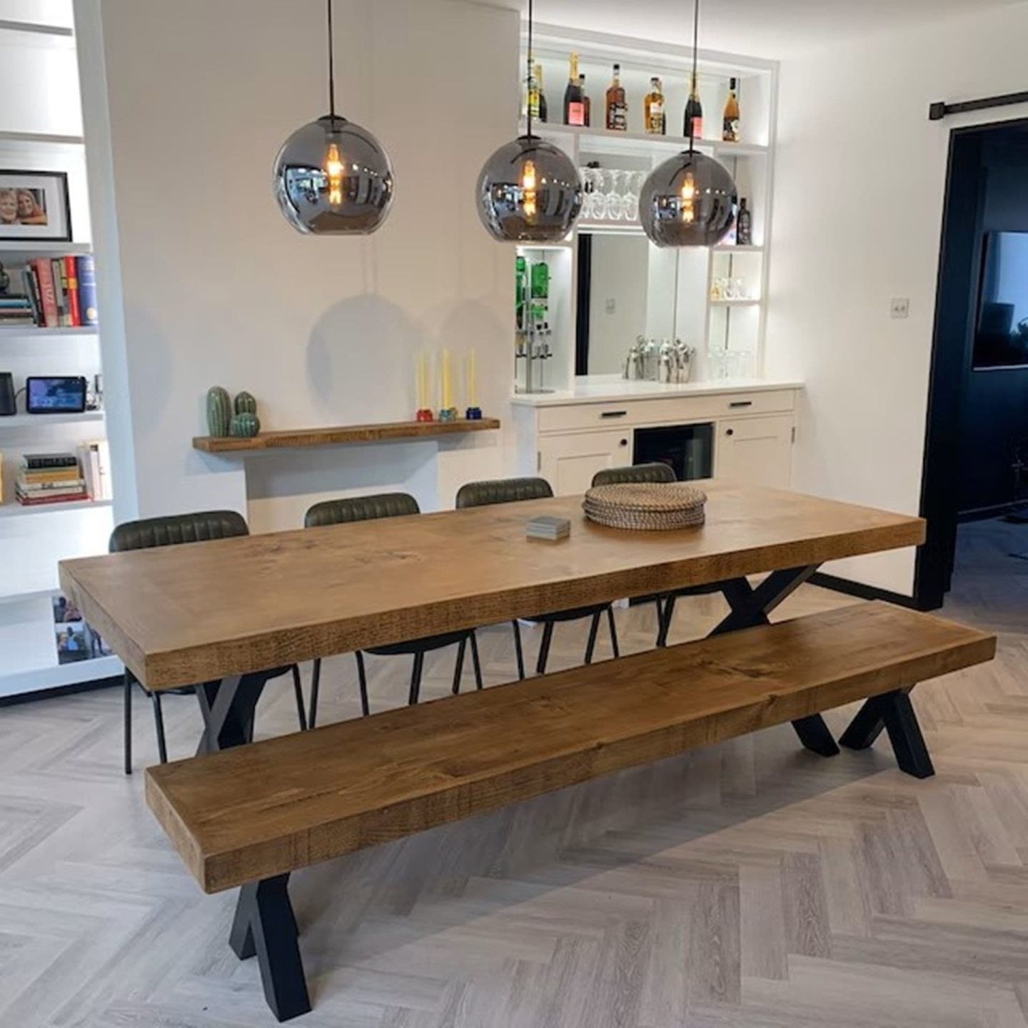 As we use rustic timber boards, each piece of wood will be carefully selected. However no two pieces will ever be the same which brings a unique element to the final product. Each piece of wood may contain any of these characteristics; marks on the wood, slight bows and twists, variation in colour, splits, saw marks, grain patterns, knots, dents and nail holes. We believe that this just adds a little extra character to your furniture. Our tables come protected with a coat of lacquer, this will ensure that you are protected from any stains or messy eaters. Each bench is meticulously crafted using new wood, skill-fully distressed to imitate the organic and irregular edges found in live edge pieces.