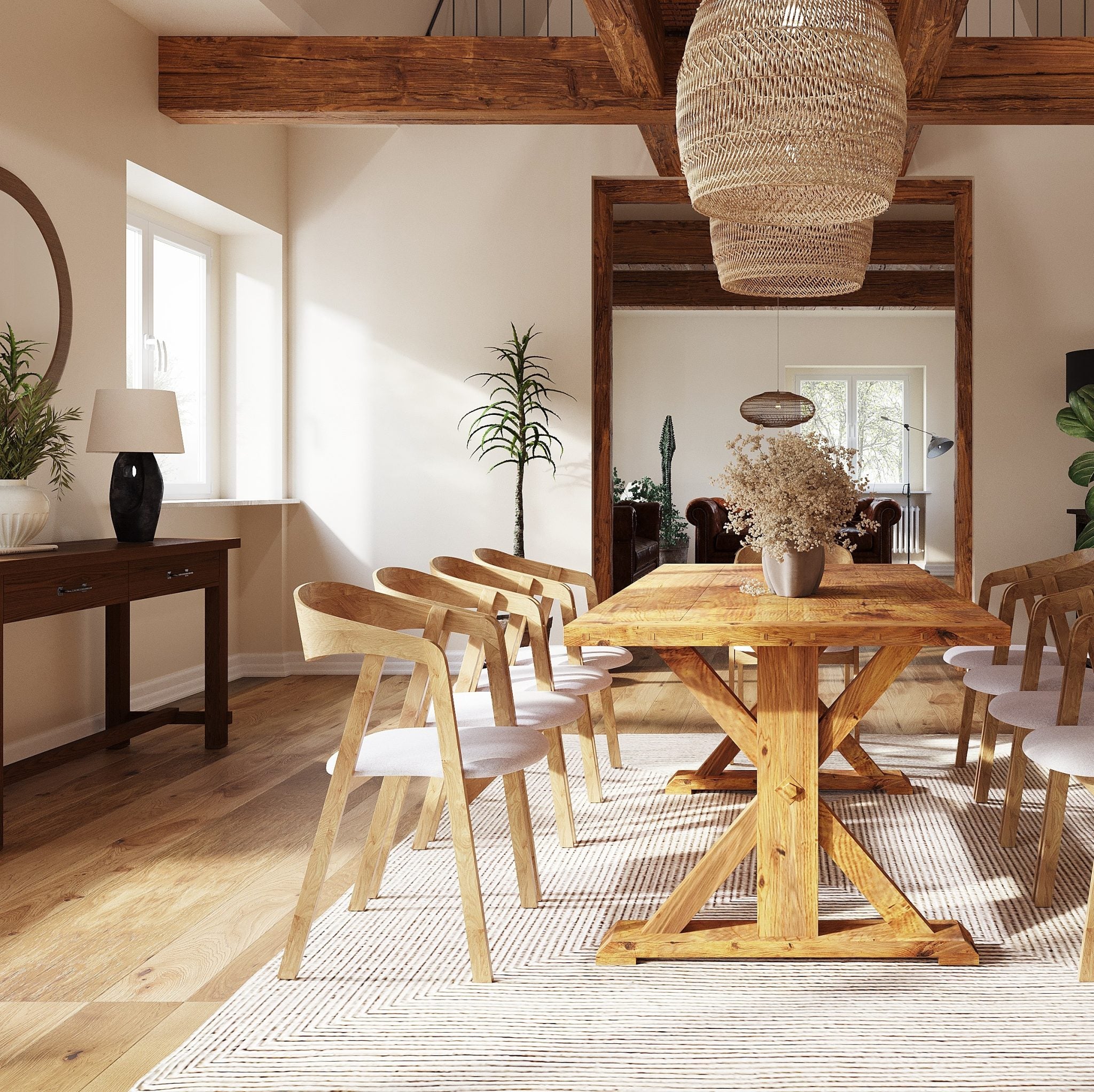 Rustic Dining Table Kirton Farmhouse X Beam Wooden Base