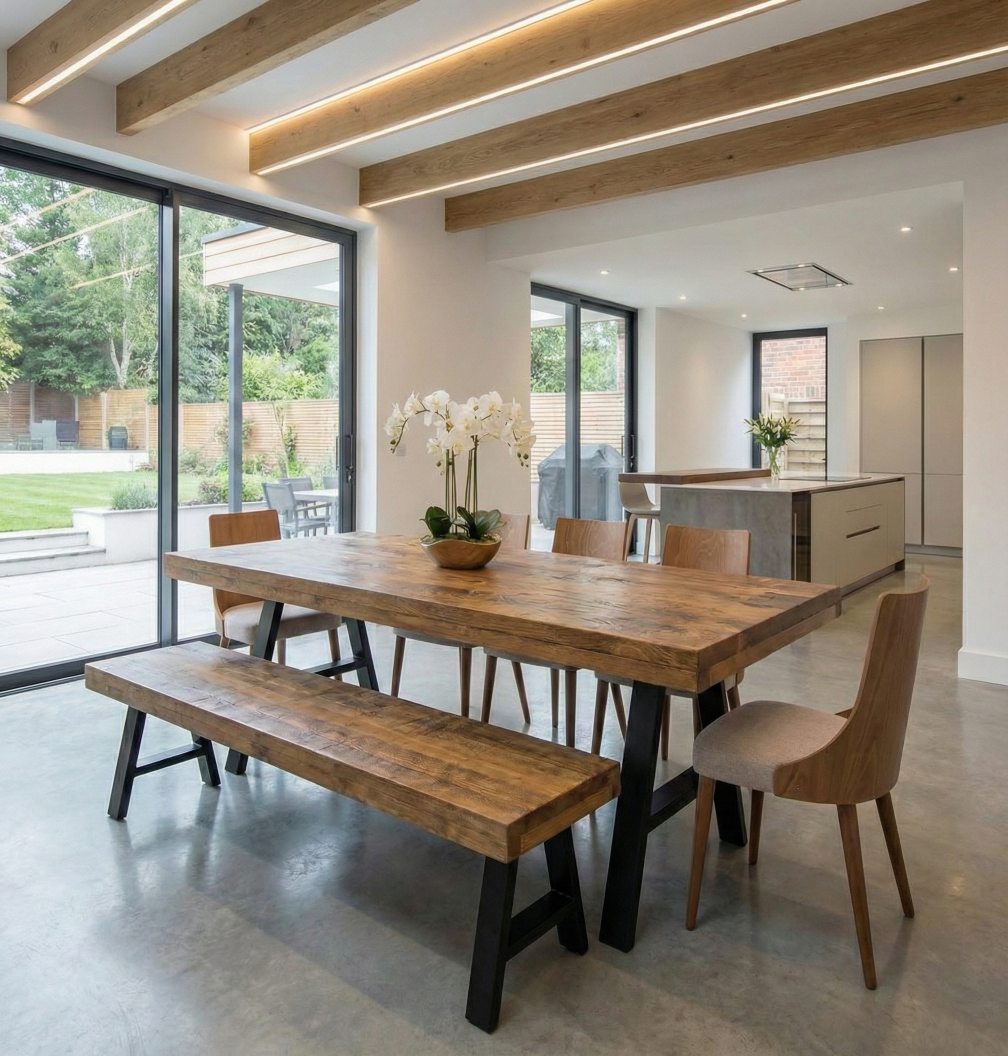 For a space-saving setup, we recommend choosing a bench that is 30 cm shorter than the table length. This allows the bench to slide neatly underneath the table when not in use, helping to keep your dining area clear.