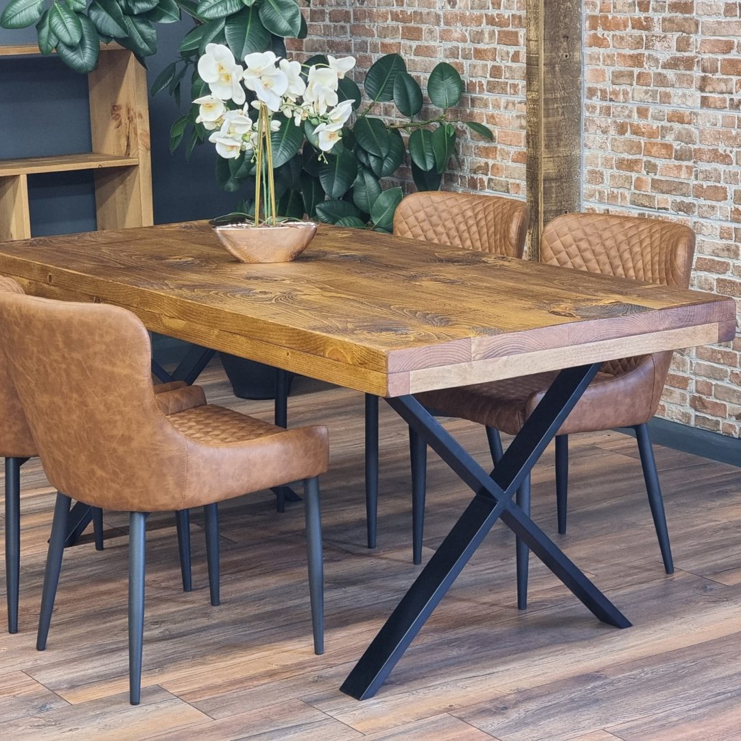 Grantham Thick Dining Industrial Dining Table X Frame Steel Legs