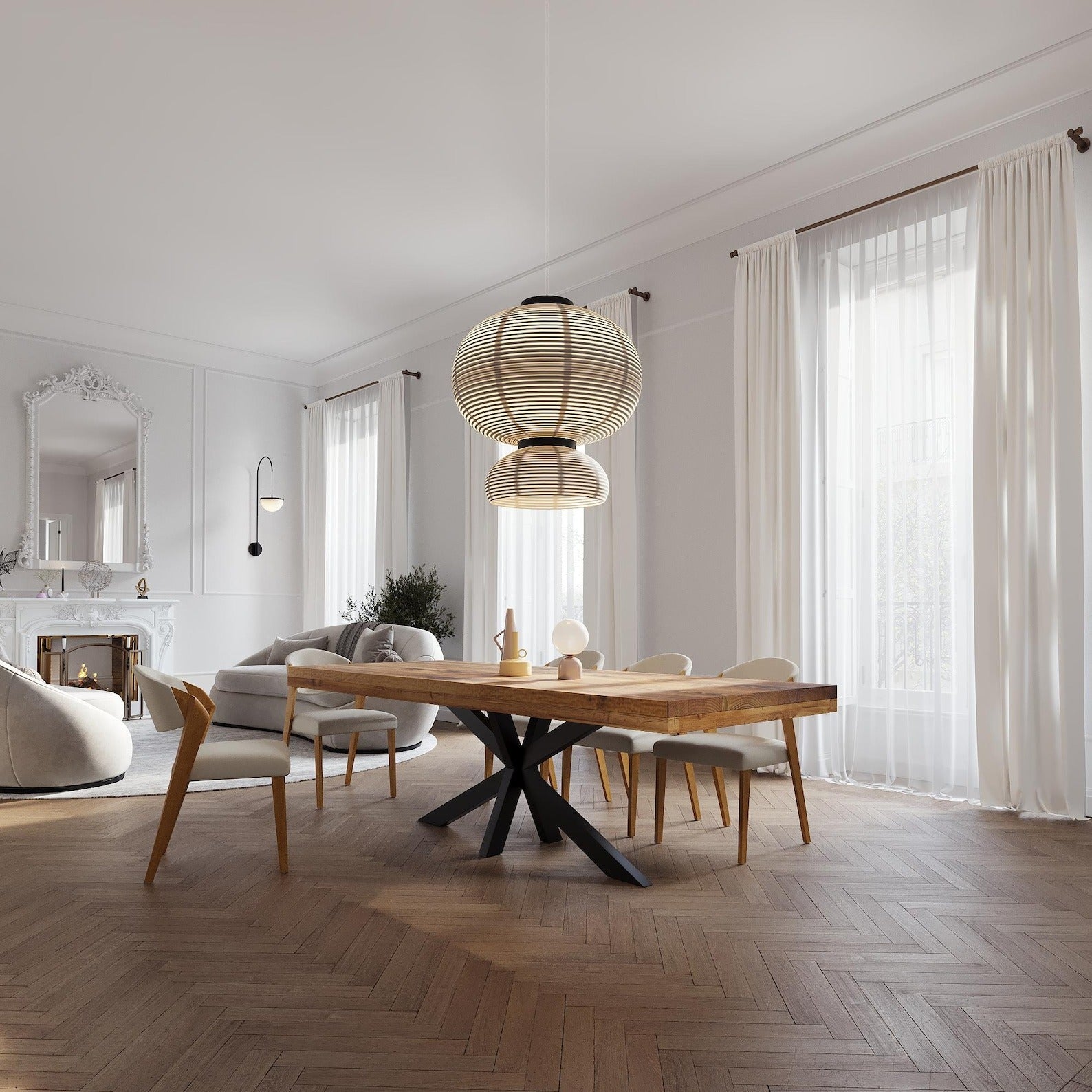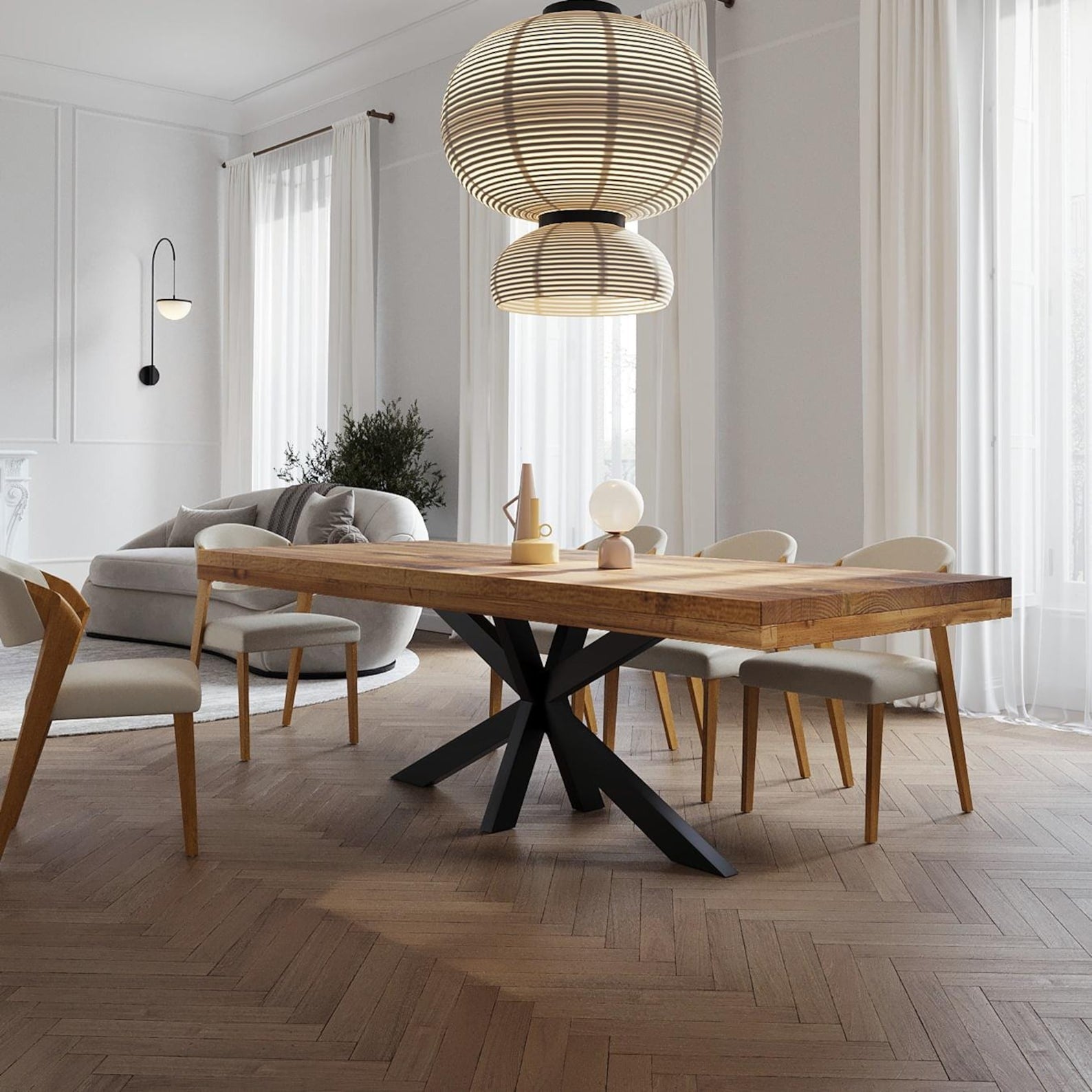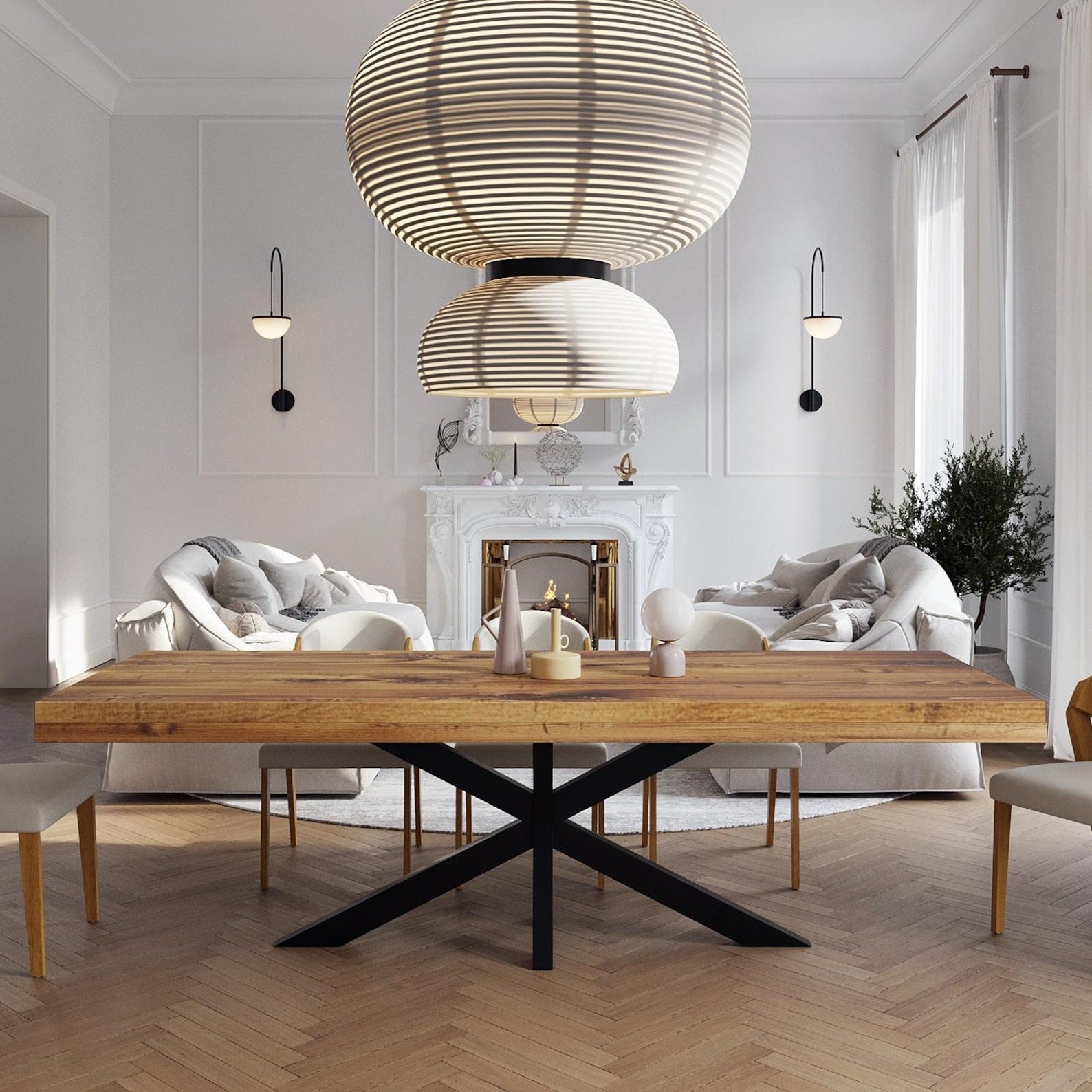 Grantham Star Dining Table Rustic Solid Wood Dining Table Industrial Straight Edge Dining Table Star Steel Base Industrial Rustic Wood