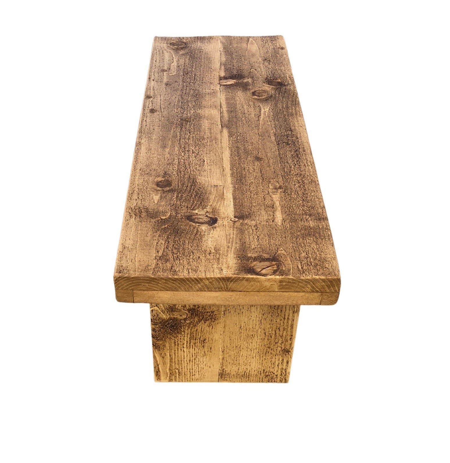As we use rustic timber boards, each piece of wood will be carefully selected. However no two pieces will ever be the same which brings a unique element to the final product. Each piece of wood may contain any of these characteristics; marks on the wood, slight bows and twists, variation in colour, splits, saw marks, grain patterns, knots, dents and nail holes. We believe that this just adds a little extra character to your furniture. Our tables come protected with a coat of lacquer, this will ensure that you are protected from any stains or messy eaters. Each bench is meticulously crafted using new wood, skill-fully distressed to imitate the organic and irregular edges found in live edge pieces.