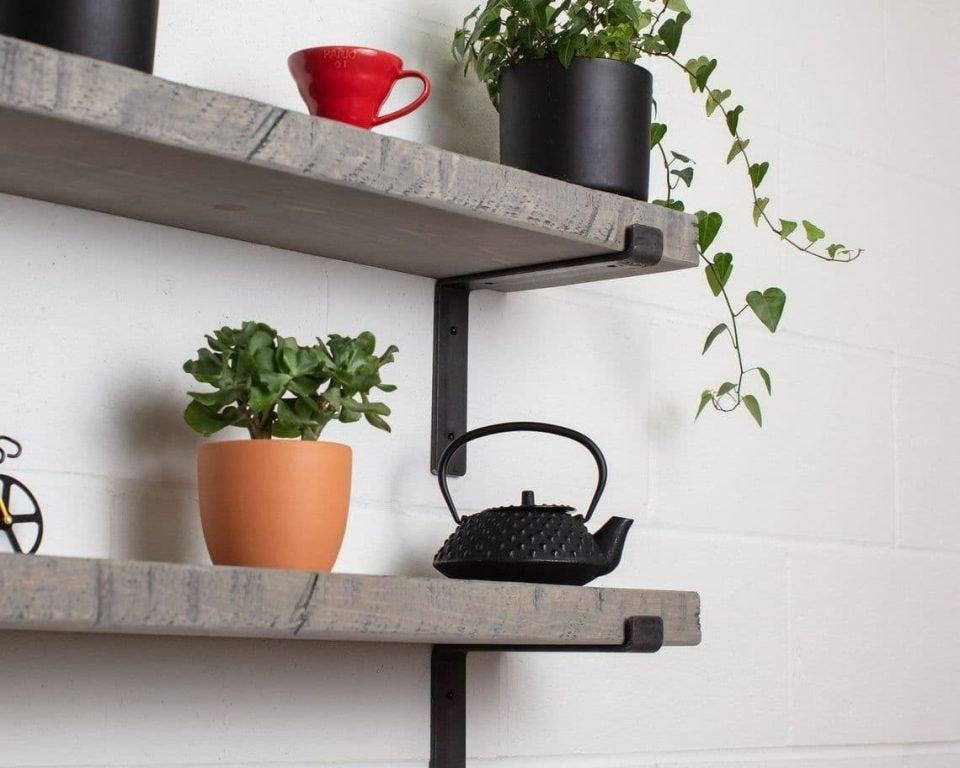 The rustic steel brackets are approximately 18cm high, 22.5cm deep and 5mm thick. The steel is left unfinished, which means rust is likely to develop over time adding to the industrial appearance.