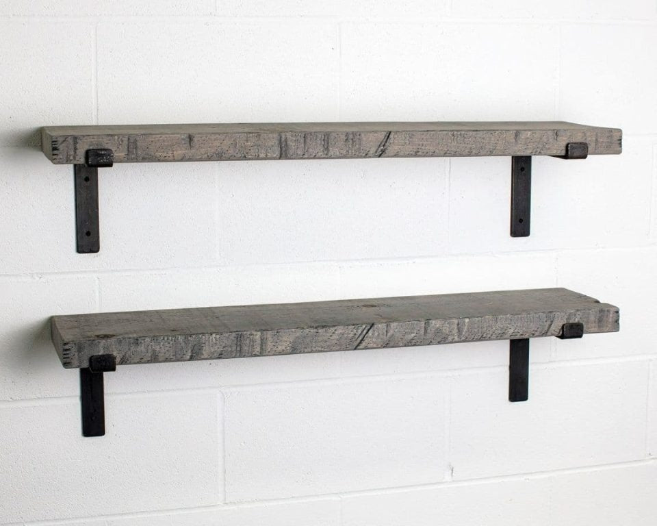The rustic steel brackets are approximately 11cm high, 22.5cm deep and 4cm thick. The steel is left unfinished, which means rust is likely to develop over time adding to the industrial appearance.
