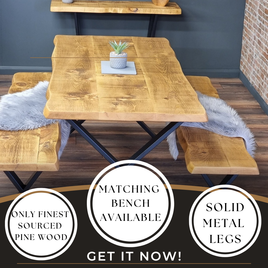 We use new timber and our craftsmen skill-fully craft an imitation of a natural live edge. As we use rustic timber boards, each piece of wood will be carefully selected. However, no two pieces will ever be the same which brings a unique element to the final product. Each piece of wood may contain any of these characteristics: marks on the wood, slight bows and twists, variation in colour, splits, saw marks, grain patterns, knots, dents and nail holes. We believe that this just adds a little extra character to your furniture.