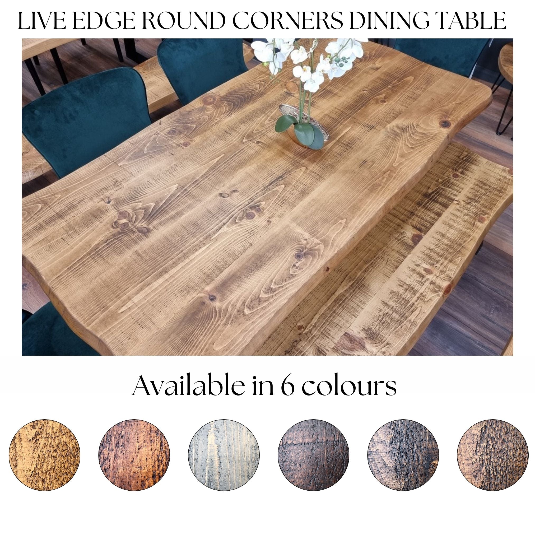 We use new timber and our craftsmen skill-fully craft an imitation of a natural live edge. As we use rustic timber boards, each piece of wood will be carefully selected. However, no two pieces will ever be the same which brings a unique element to the final product. Each piece of wood may contain any of these characteristics: marks on the wood, slight bows and twists, variation in colour, splits, saw marks, grain patterns, knots, dents and nail holes. We believe that this just adds a little extra character to your furniture.