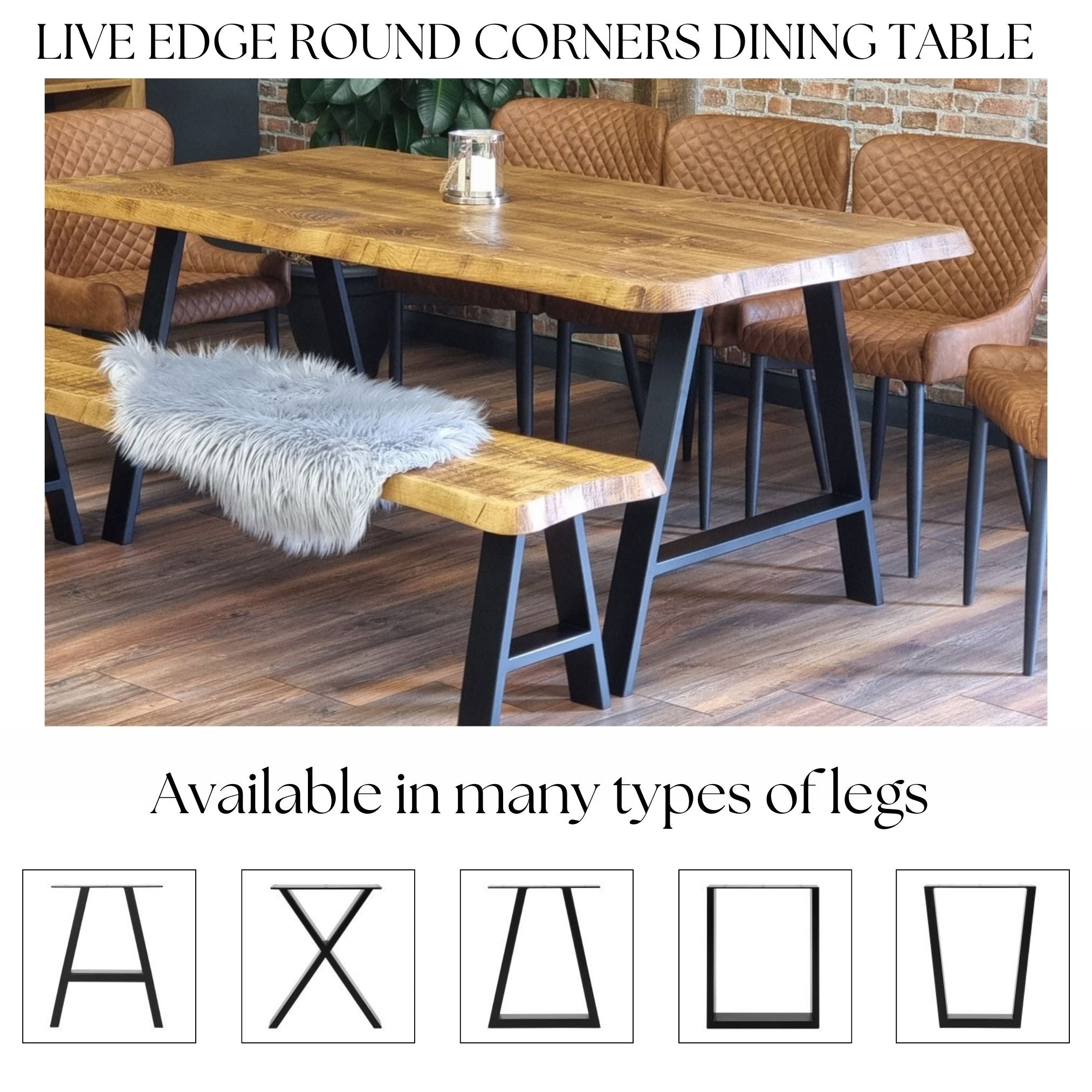 Live Edge Round Corners Dining Table with Metal Legs Cotswold