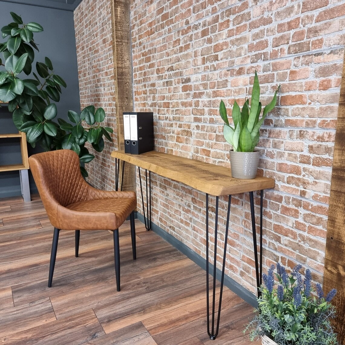 Live Edge Small Desk Console Table Hairpin Legs Rustic Hallway Table 34cm WidthOur Rustic Small Desk Console Table with 4... Read more