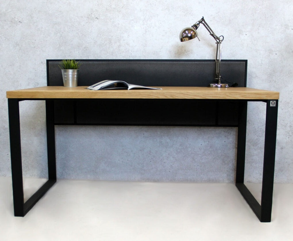 This loft-style desk features a solid oak top and perforated metal front, and a powder-coated base. The perforated metal is... Read more