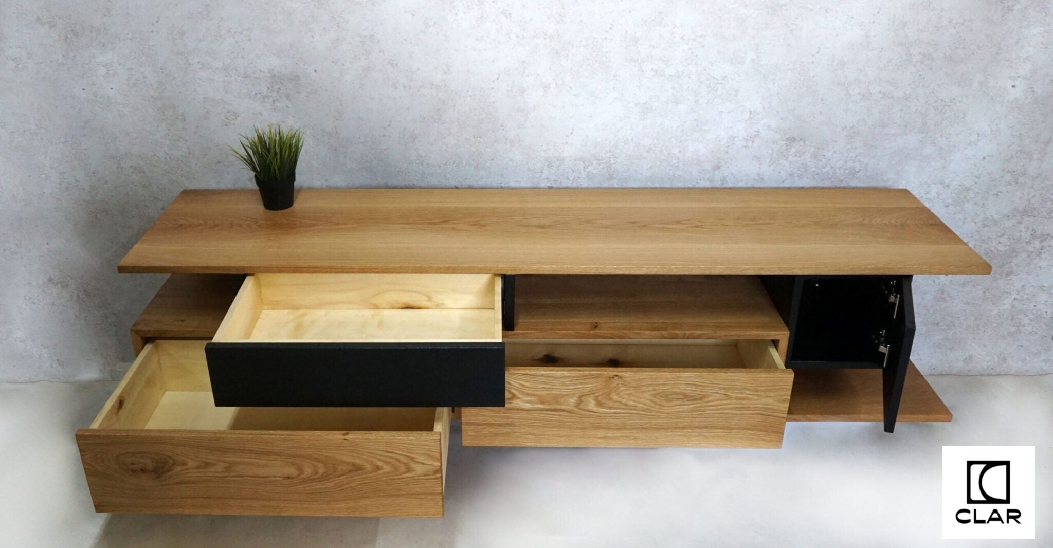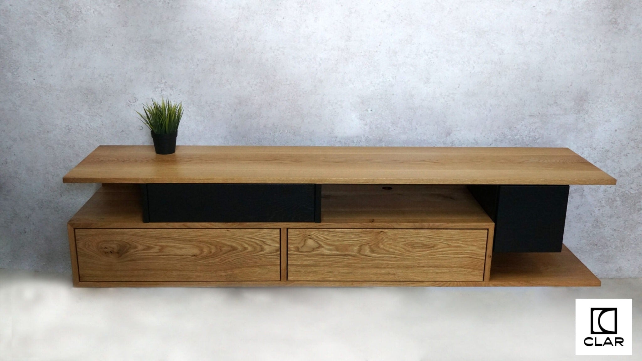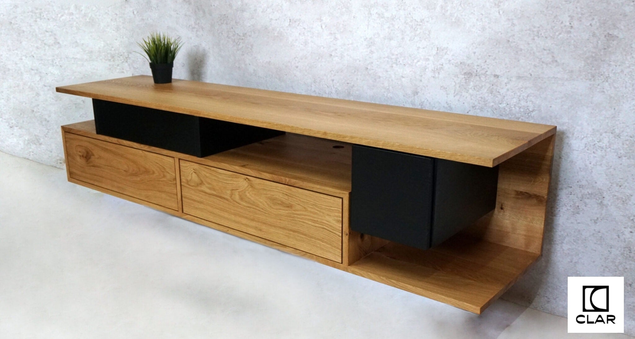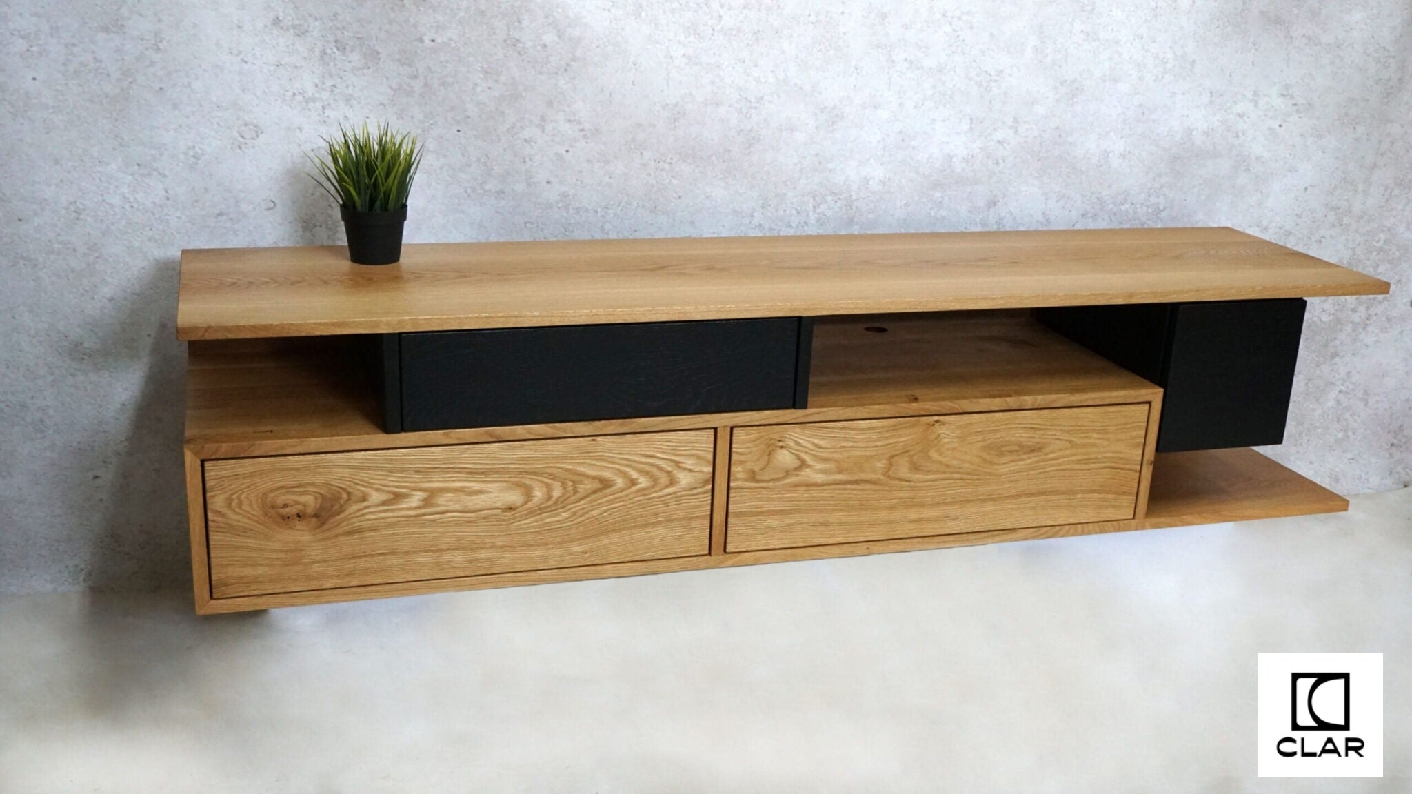 A loft-style wall-mounted TV stand. For solid walls only!It features three practical drawers, space for TV equipment, and a practical... Read more
