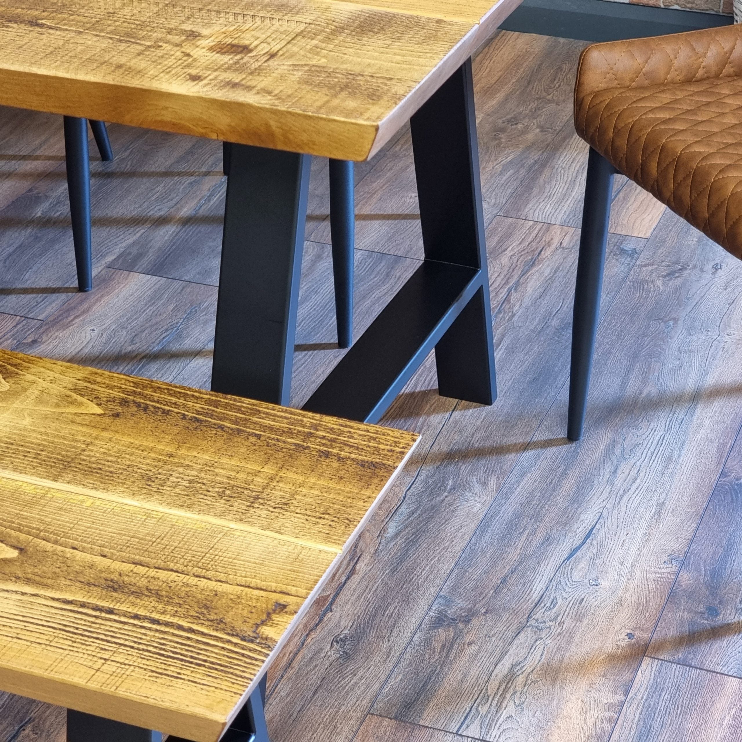 As we use rustic timber boards, each piece of wood will be carefully selected. However no two pieces will ever be the same which brings a unique element to the final product. Each piece of wood may contain any of these characteristics; marks on the wood, slight bows and twists, variation in colour, splits, saw marks, grain patterns, knots, dents and nail holes. We believe that this just adds a little extra character to your furniture. Our tables come protected with a coat of lacquer, this will ensure that you are protected from any stains or messy eaters. Each bench is meticulously crafted using new wood, skill-fully distressed to imitate the organic and irregular edges found in live edge pieces.