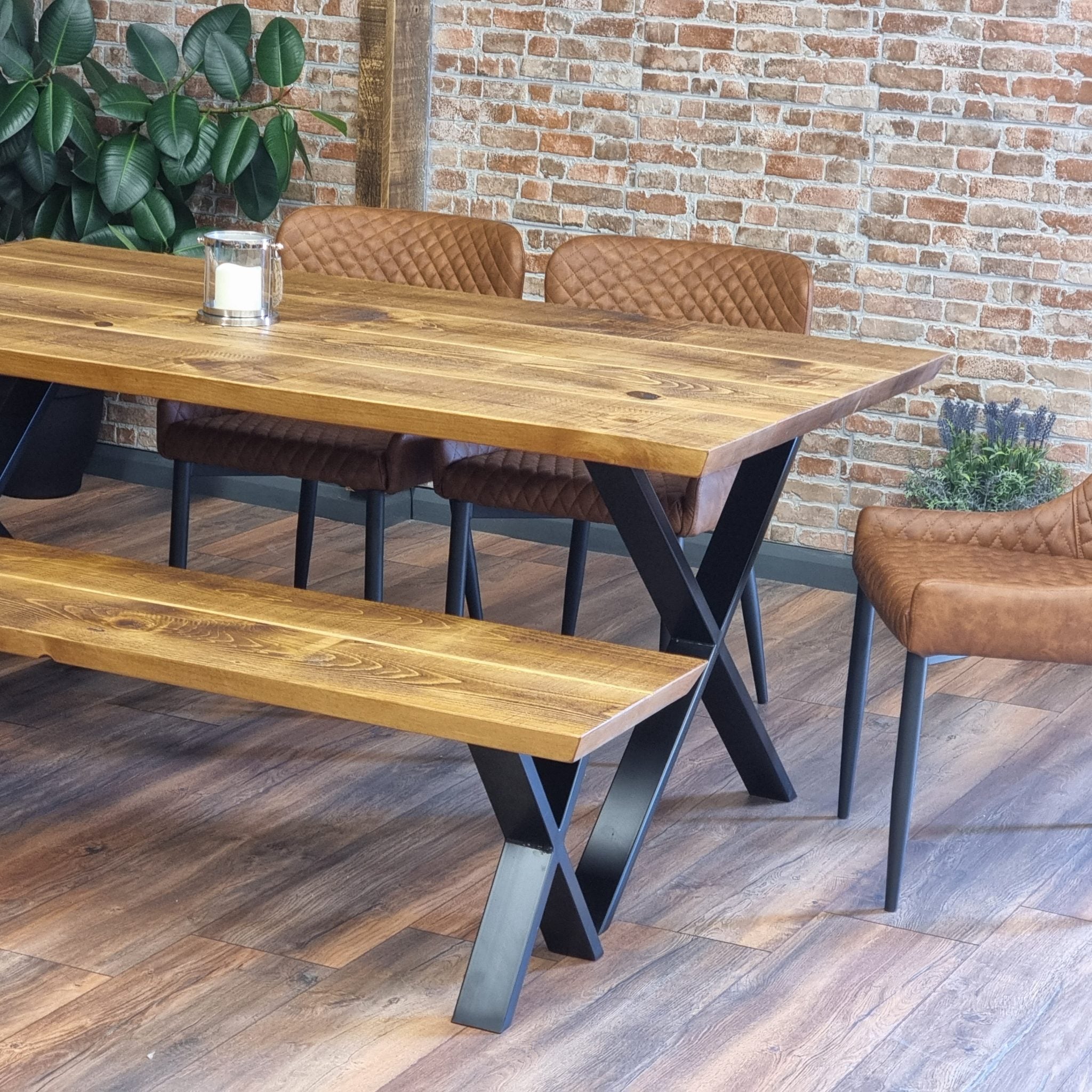 Louth Dining Table Industrial Rustic Wood Angle Cut Edge X Frame Metal Legs Cotswold