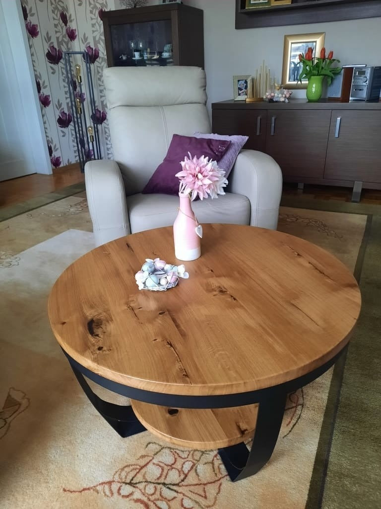 This loft-style coffee table is a perfect blend of the natural beauty of wood and the rawness of steel elements. The solid oak tabletops captivate with their unique grain, warm tone, and solidity. Their smooth surface and precise finish emphasize the oak's unique character, adding elegance and natural charm to the interior. The table's base is made of steel, giving it a modern, industrial look. The geometric, minimalist form ensures stability while also incorporating the loft-style aesthetic. The black steel finish creates a striking contrast with the warm wood, attracting attention and emphasizing the modern design. The coffee table is both functional and decorative – perfect for loft-inspired interiors, but also a great addition to more classic interiors. This is a proposal for those who value durability, simplicity, and timeless style.