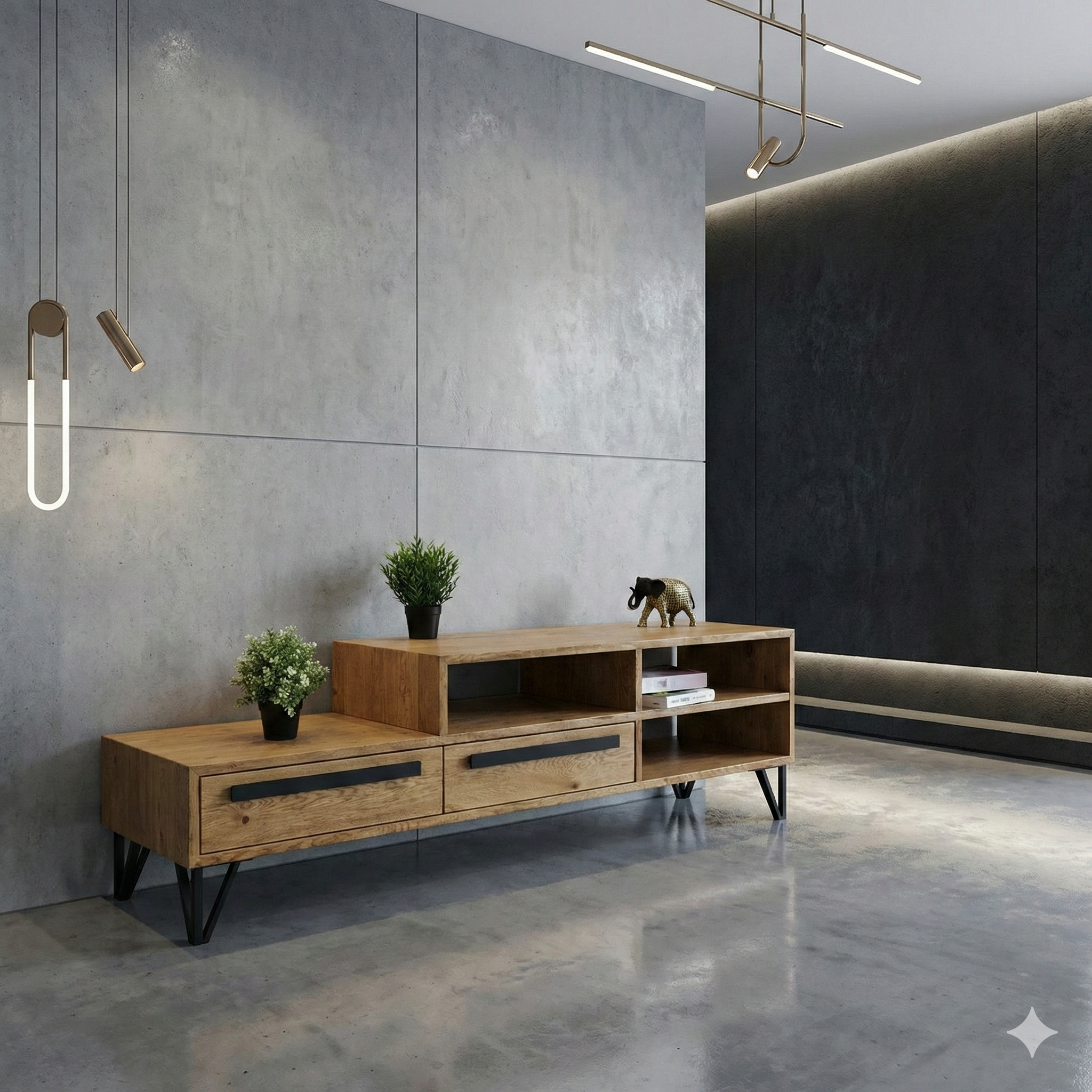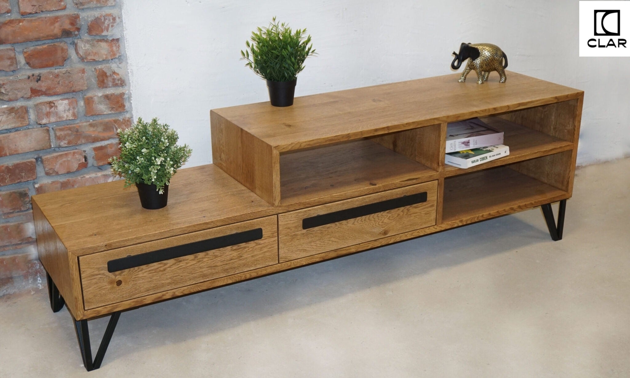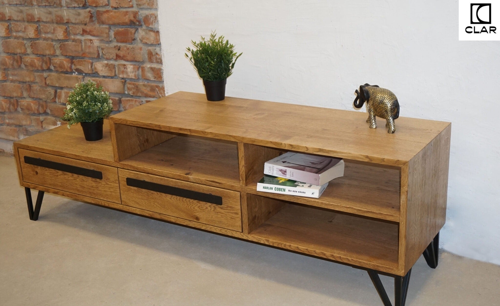 Oak loft TV cabinet PLUM