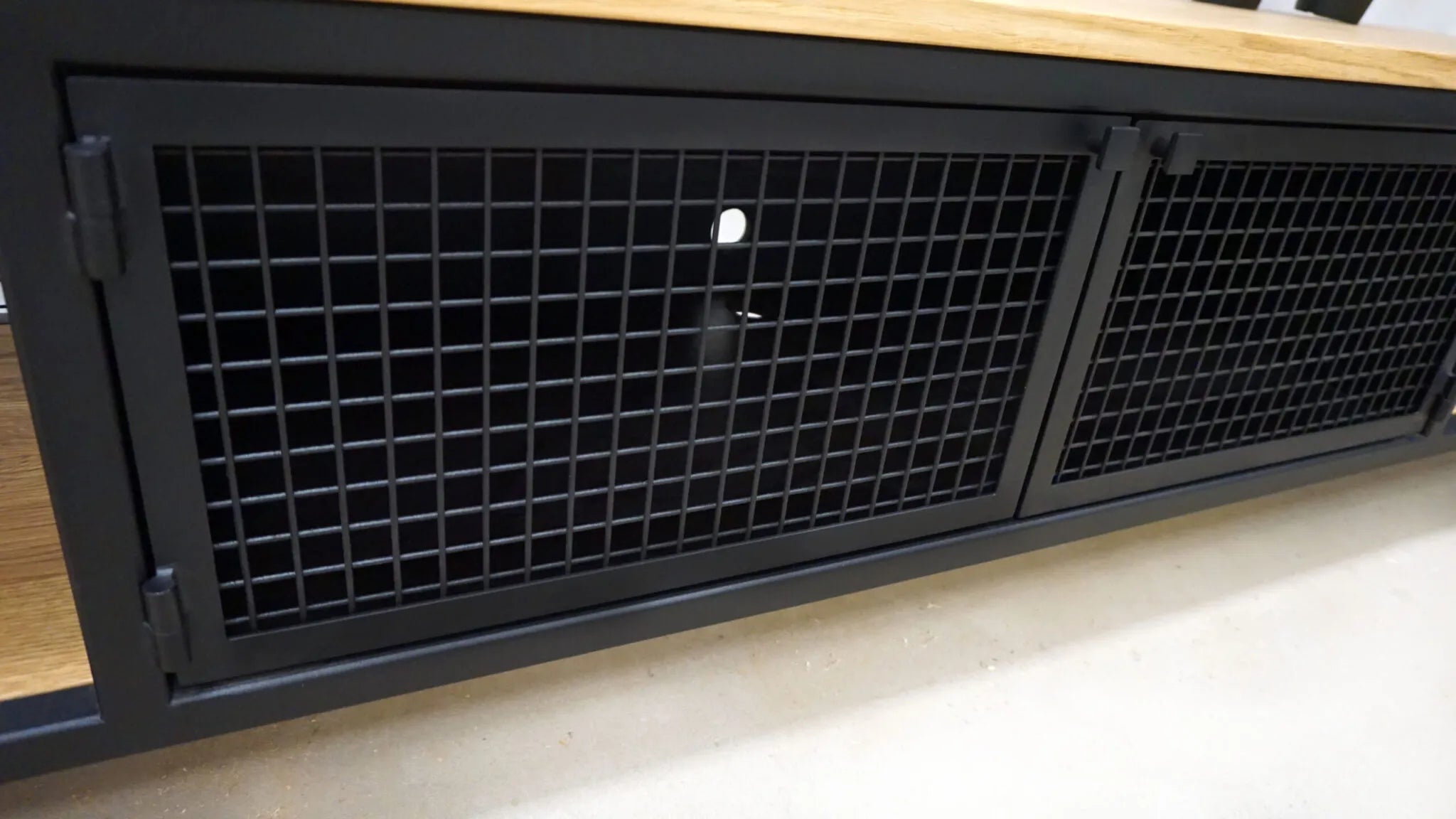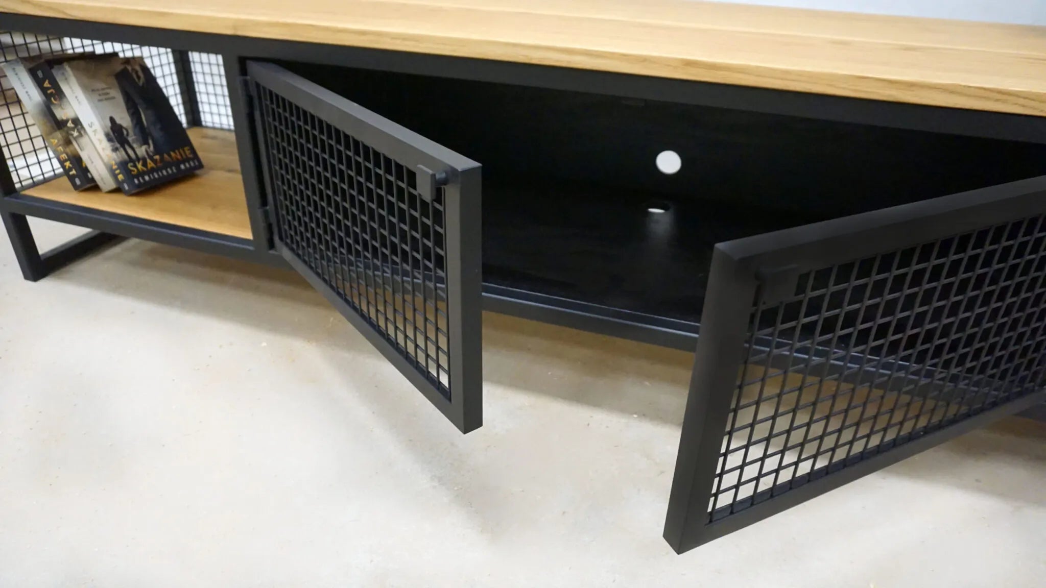 Oak TV cabinet with perforation, loft style Langtoft