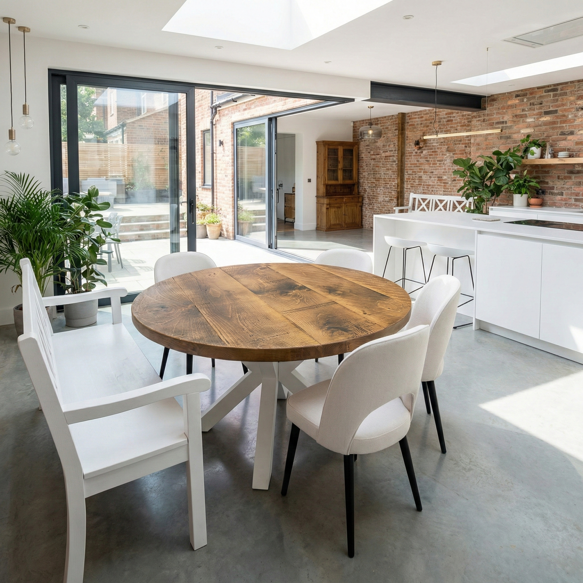 Round Dining Table Vintage Star Leg Kitchen Table Rustic Industrial Wooden Star Legs. Our tables come protected with a coat of lacquer, this will ensure that you are protected from any stains or messy eaters.These Rustic Dining Tables have been carefully handmade in our Lincolnshire workshop, using only the finest materials.