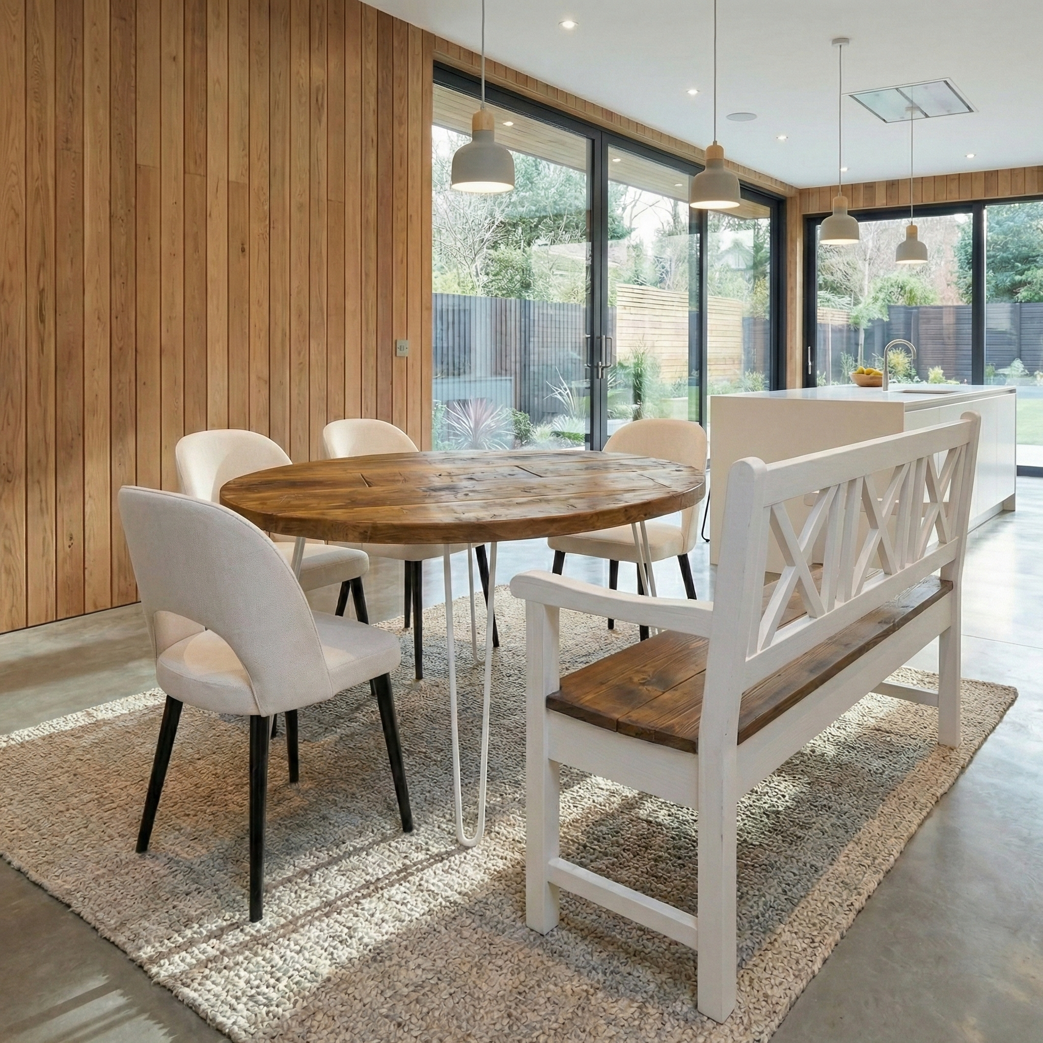 Round Dining Table Vintage Hairpin Leg Kitchen Table Rustic Industrial Steel Hairpin Legs. Our tables come protected with a coat of lacquer, this will ensure that you are protected from any stains or messy eaters.These Rustic Dining Tables have been carefully handmade in our Lincolnshire workshop, using only the finest materials.