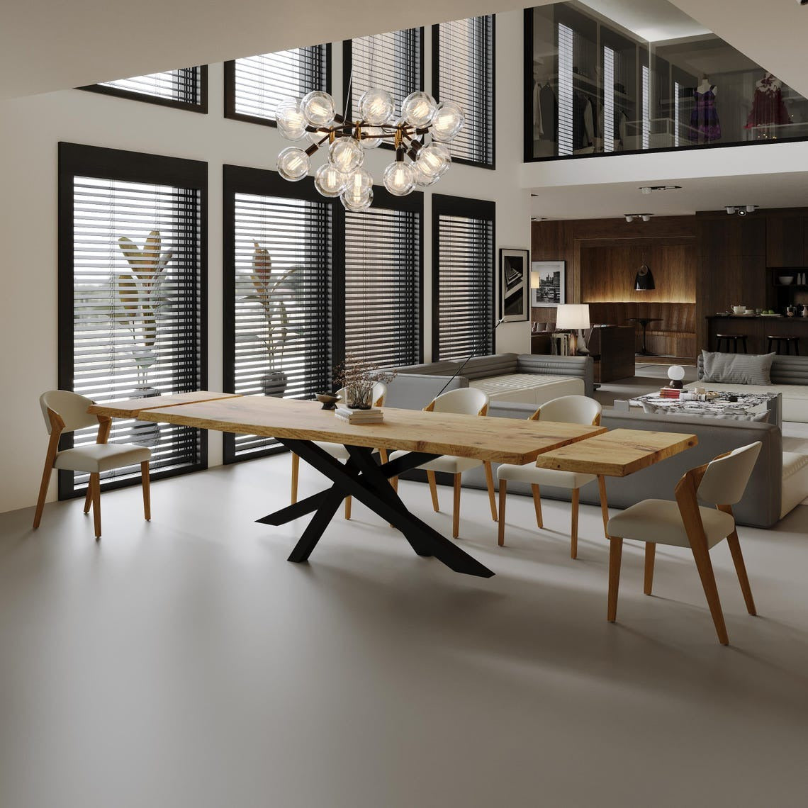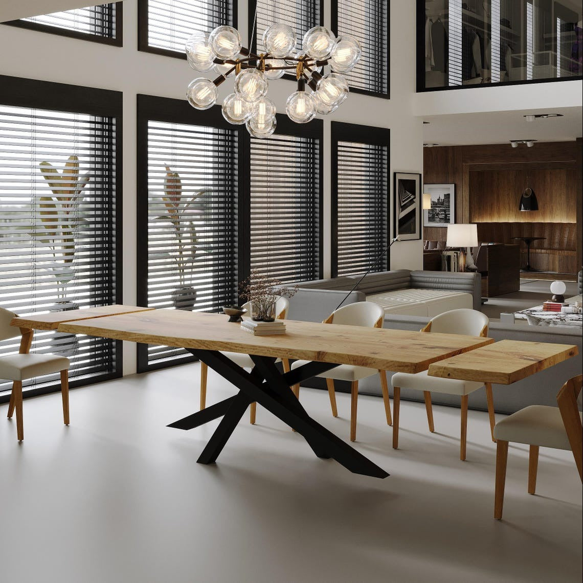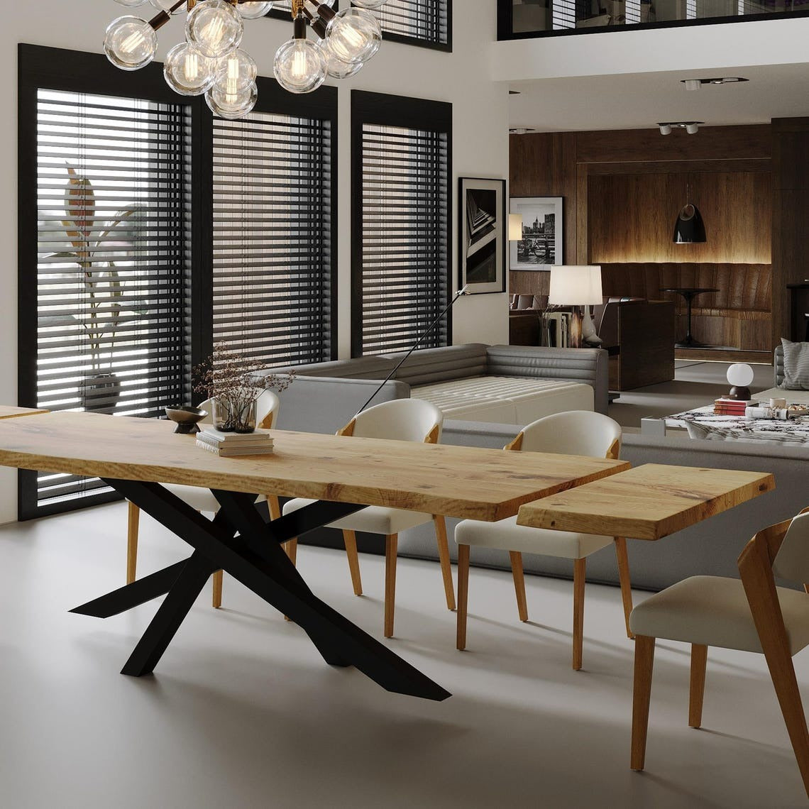 Dining Table Live Edge Extendable 2-Sides Dining Table Kitchen Industrial Rustic Wood, Crossover Steel Base