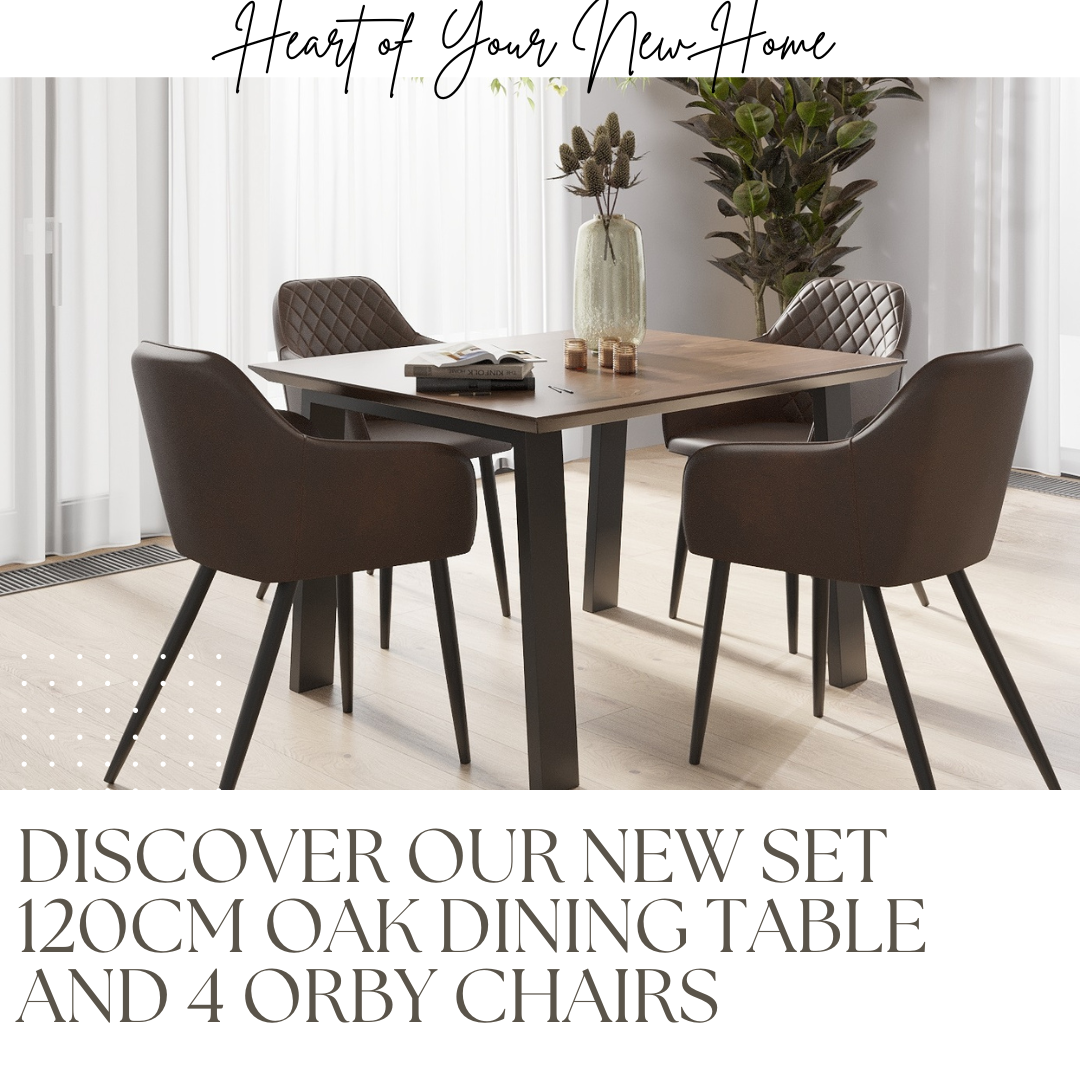 SET - 120cm Solid Oak Dining Table + 4 Chairs PU LEATHER ORBY