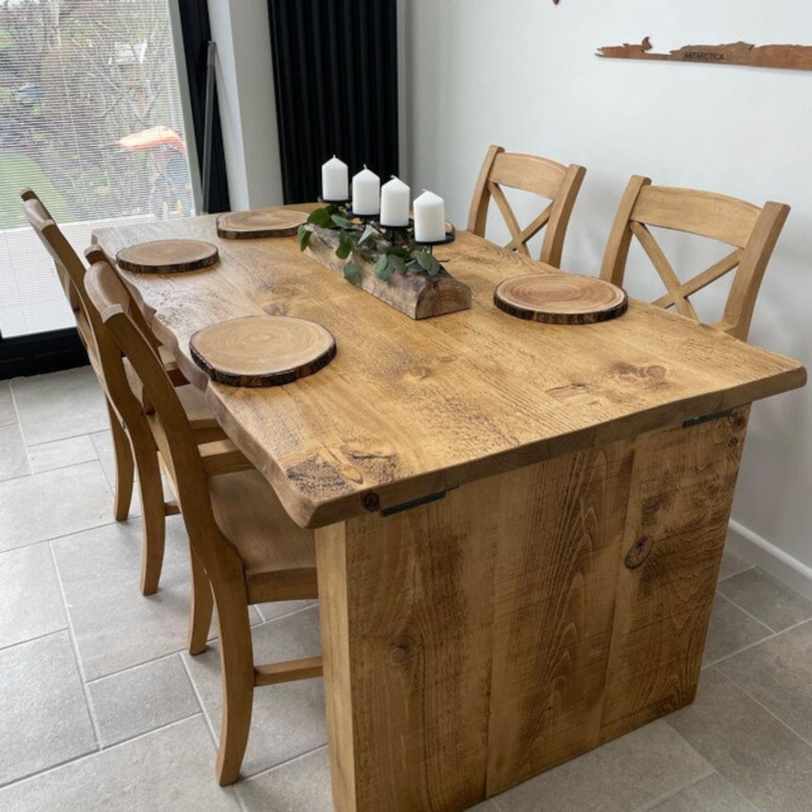 SET - 160cm Table + 4 Chairs - Dining Table Industrial Live Edge Dining Table Wooden Block Legs Industrial Rustic Wood