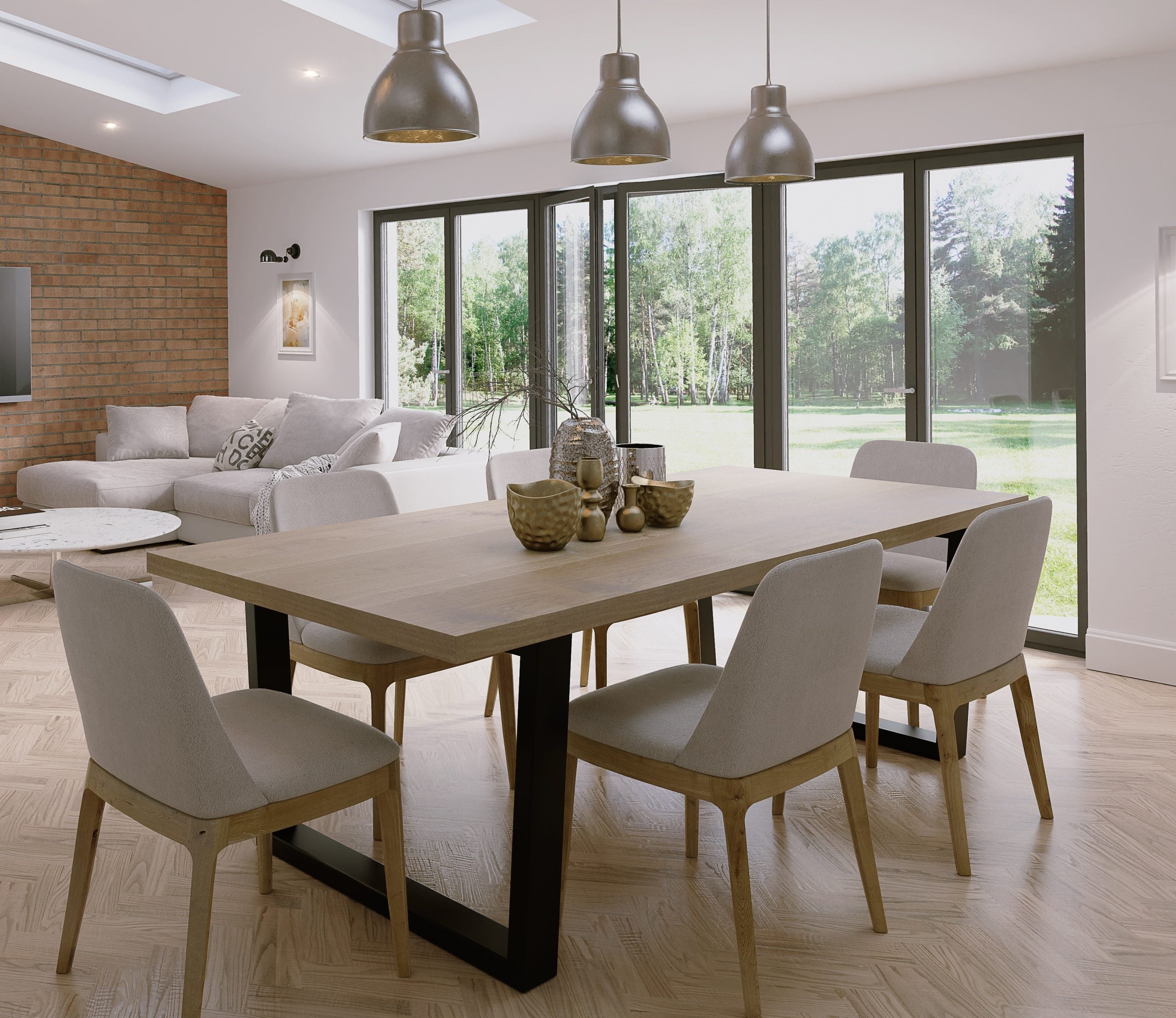 Solid Oak Dining Table Steel Leg 034