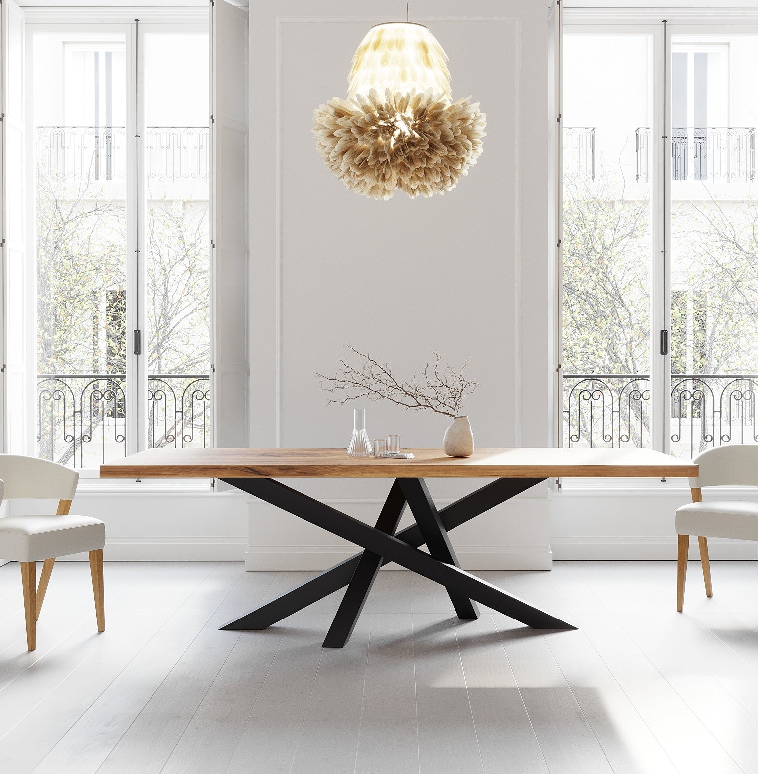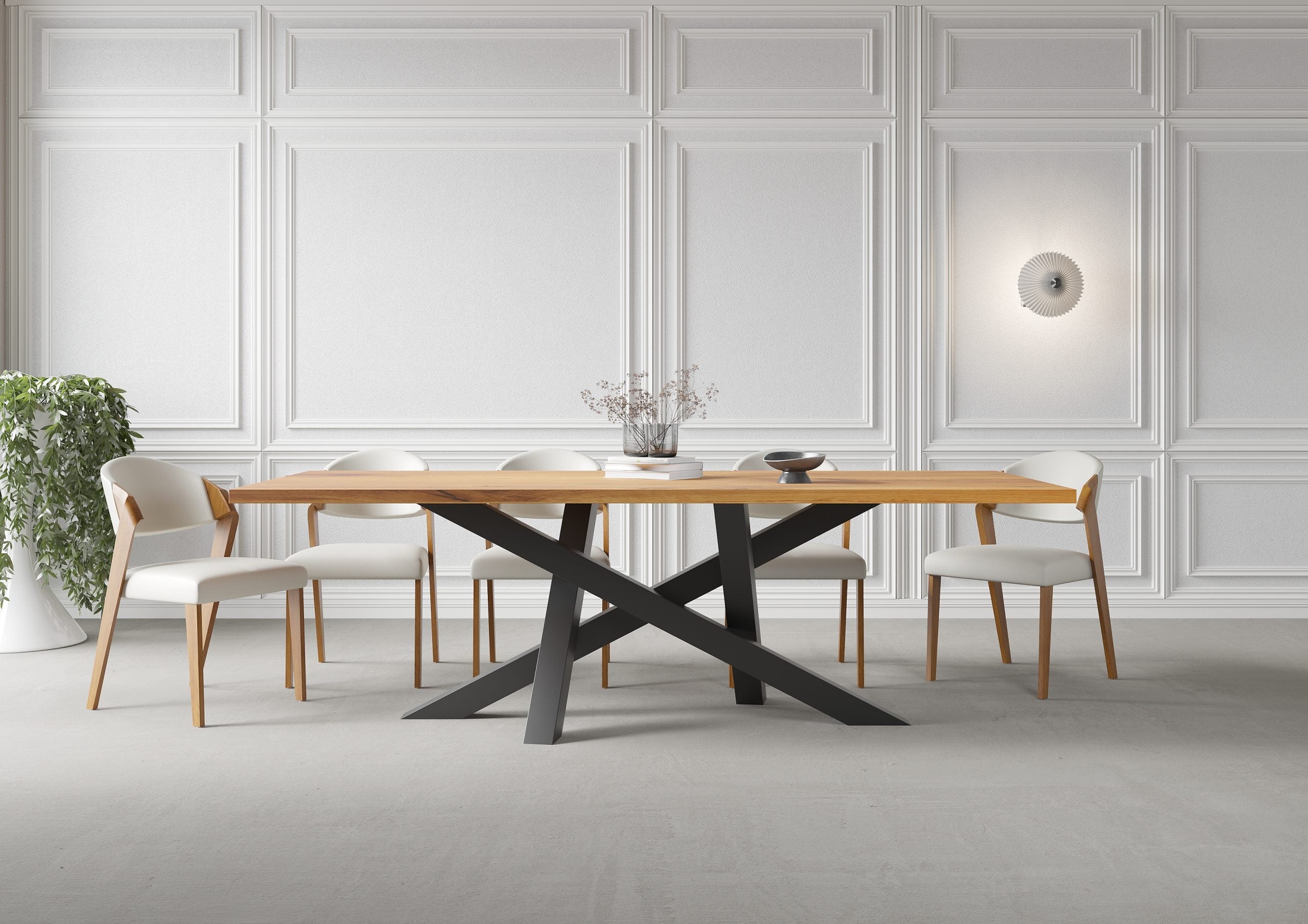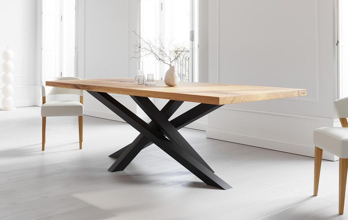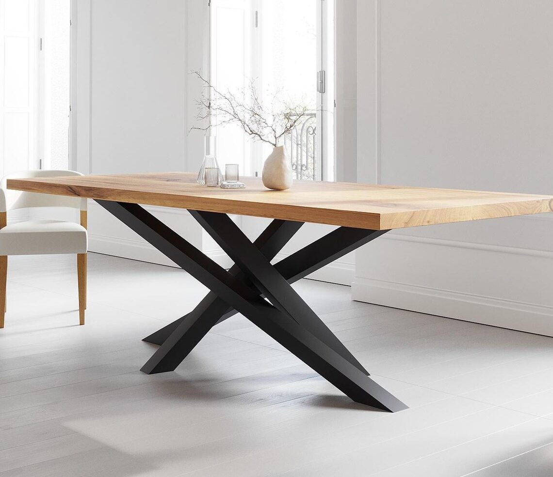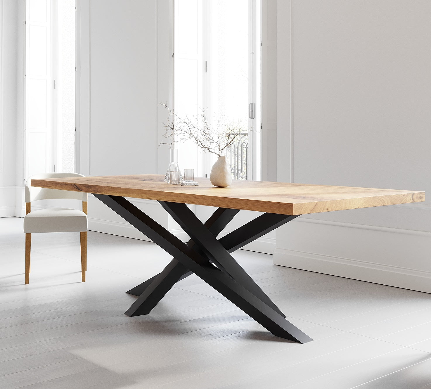 Solid Oak Dining Table with Crossover Steel Base – DURABLE HARDWOOD CLAR 081