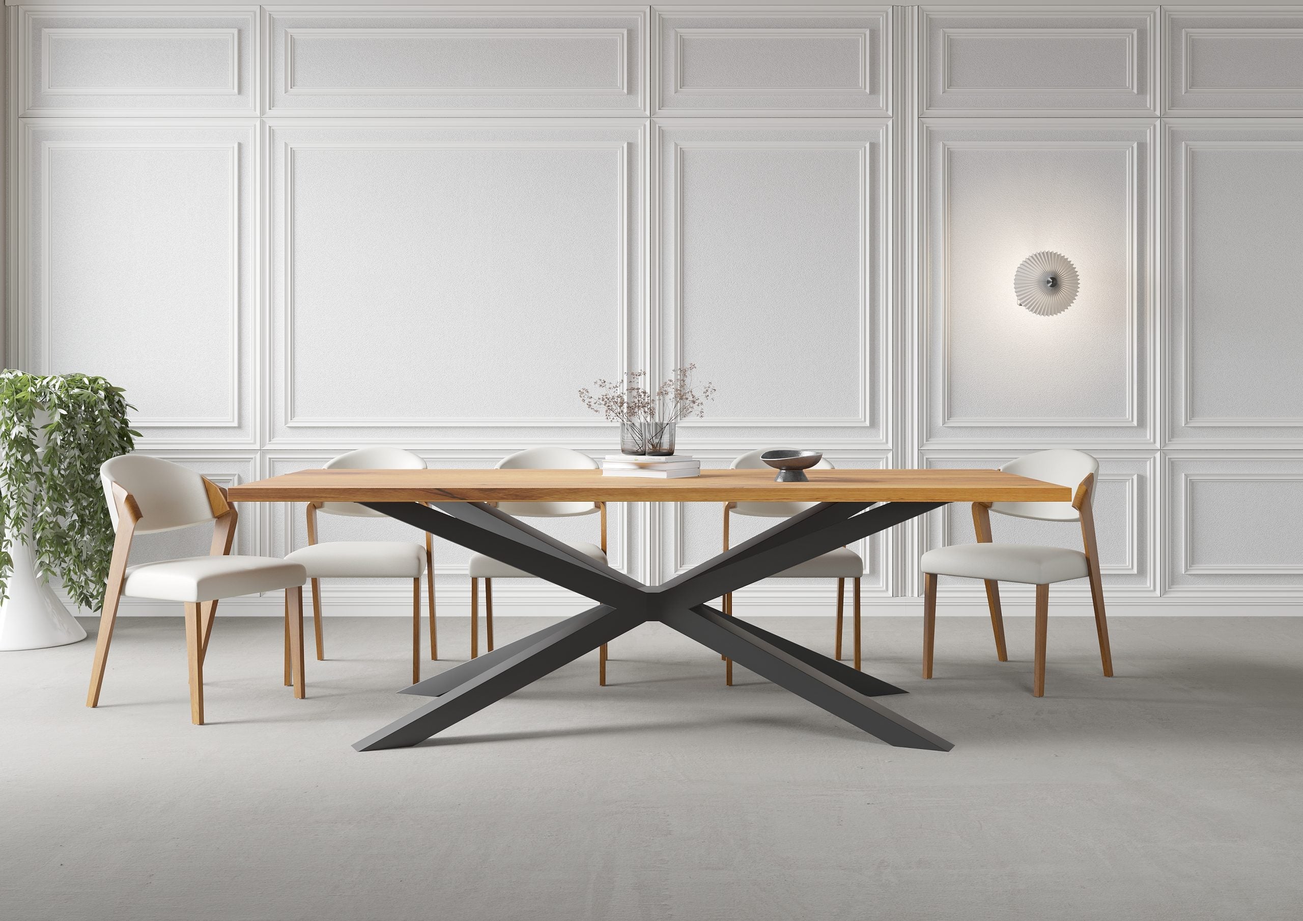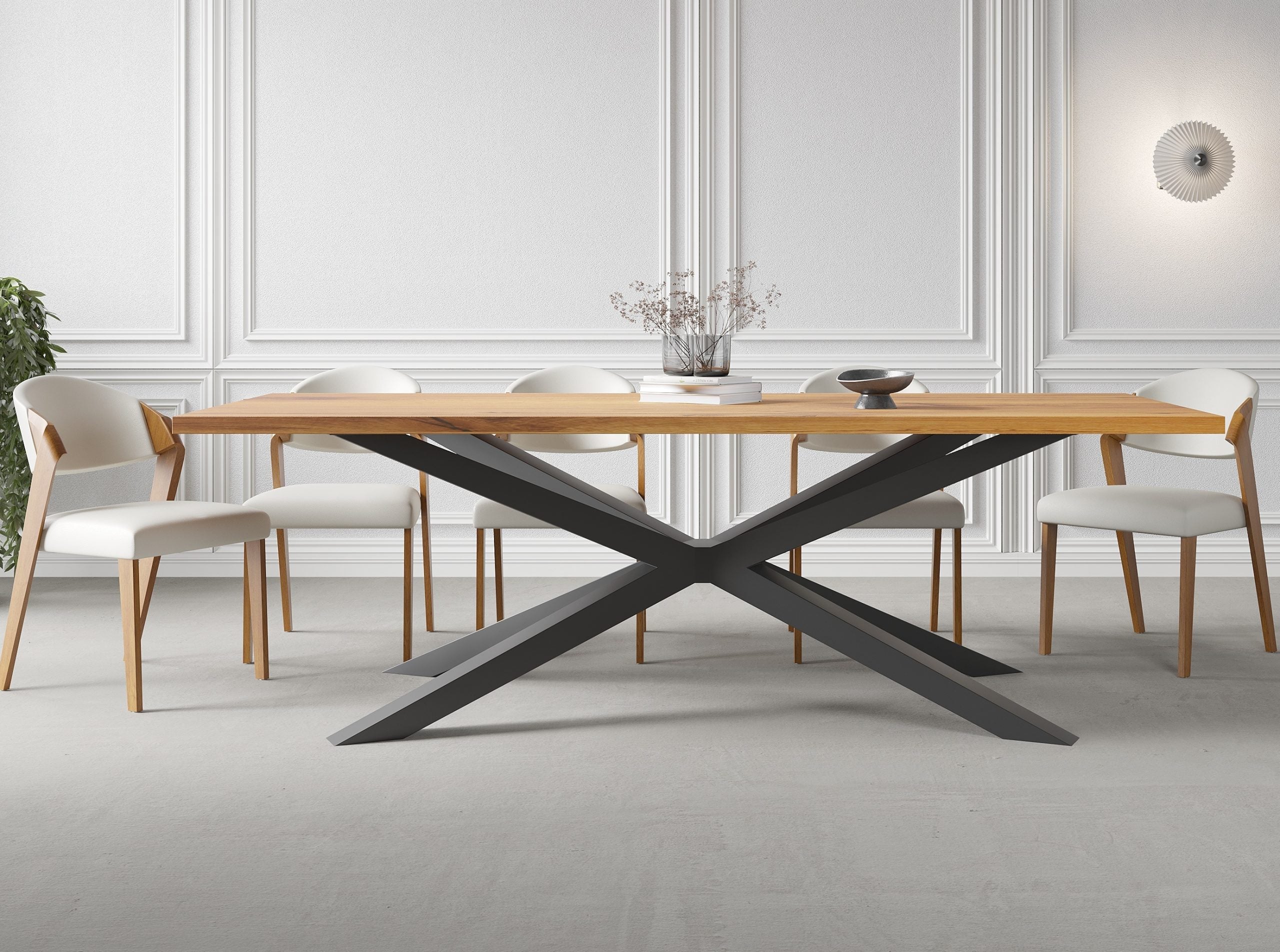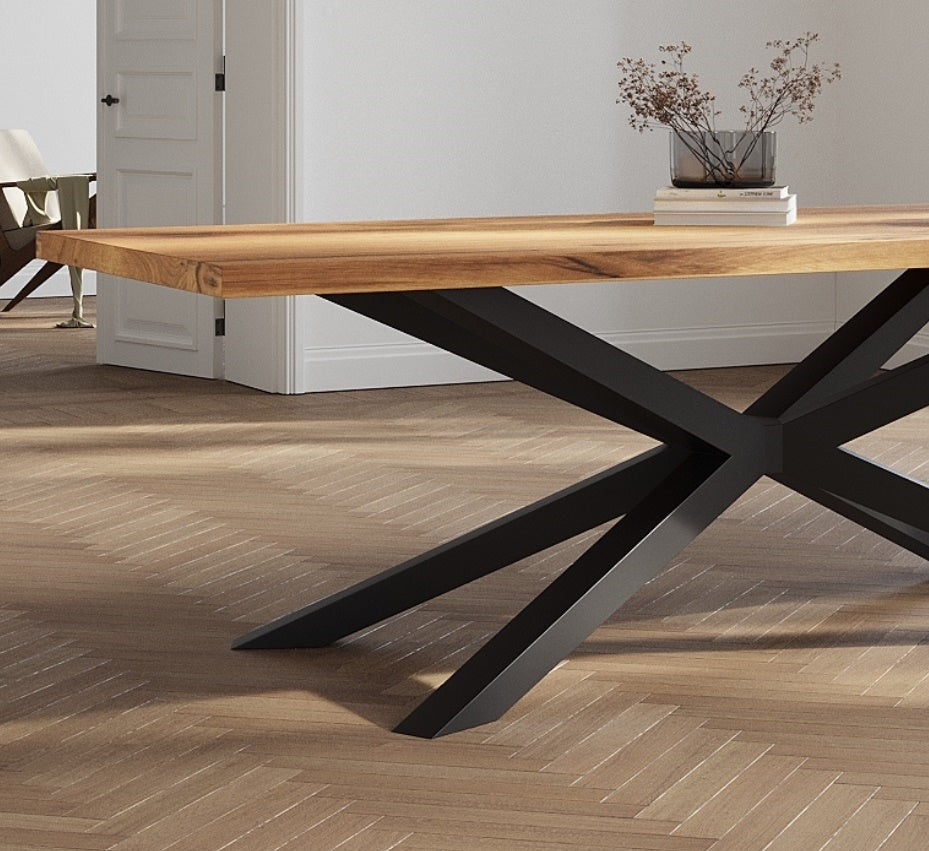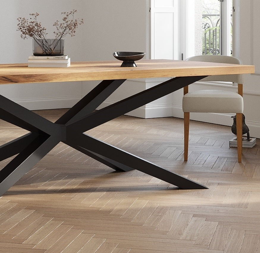 Solid Oak Dining Table with Spider Steel Base – DURABLE HARDWOOD CLAR 082