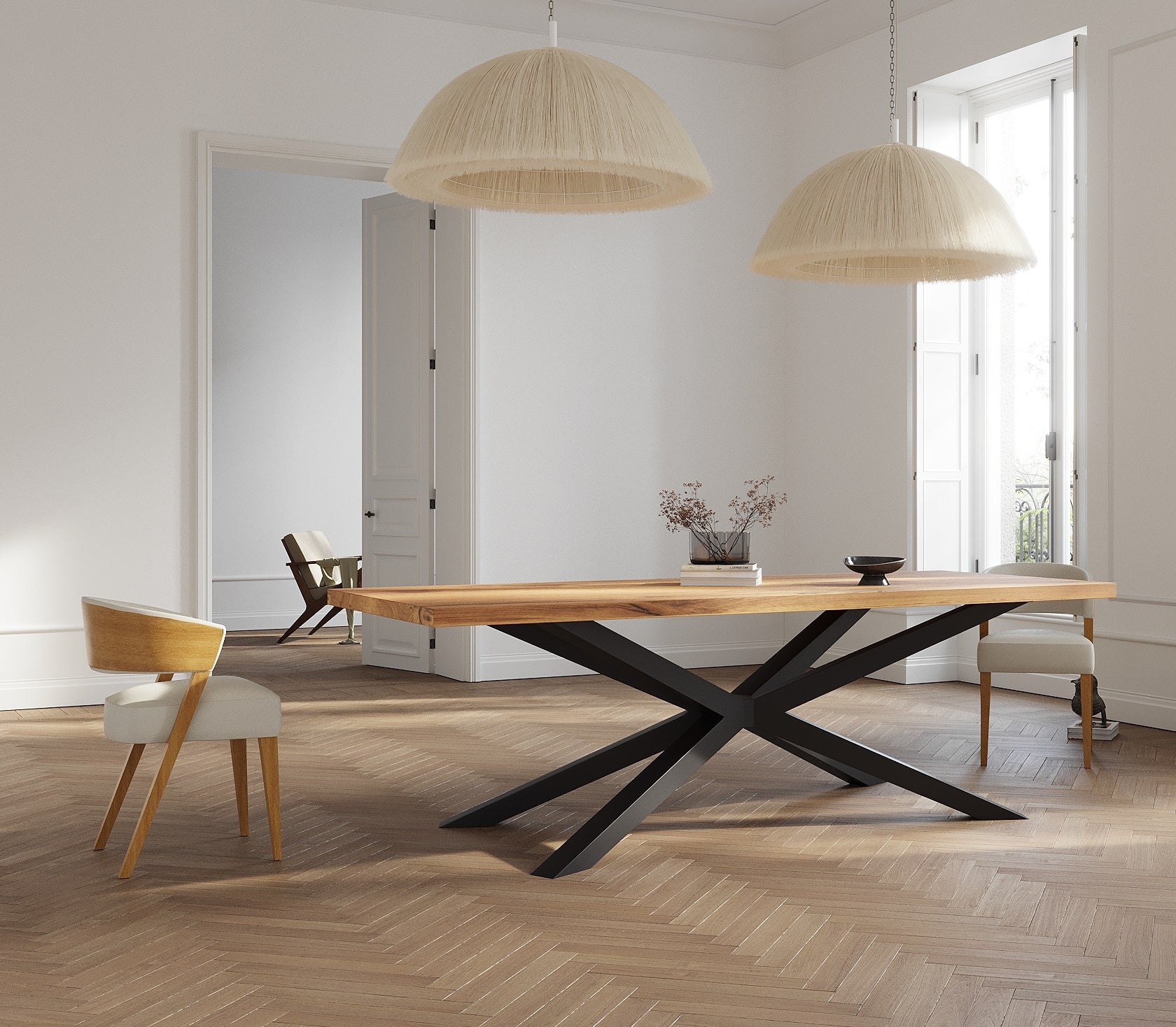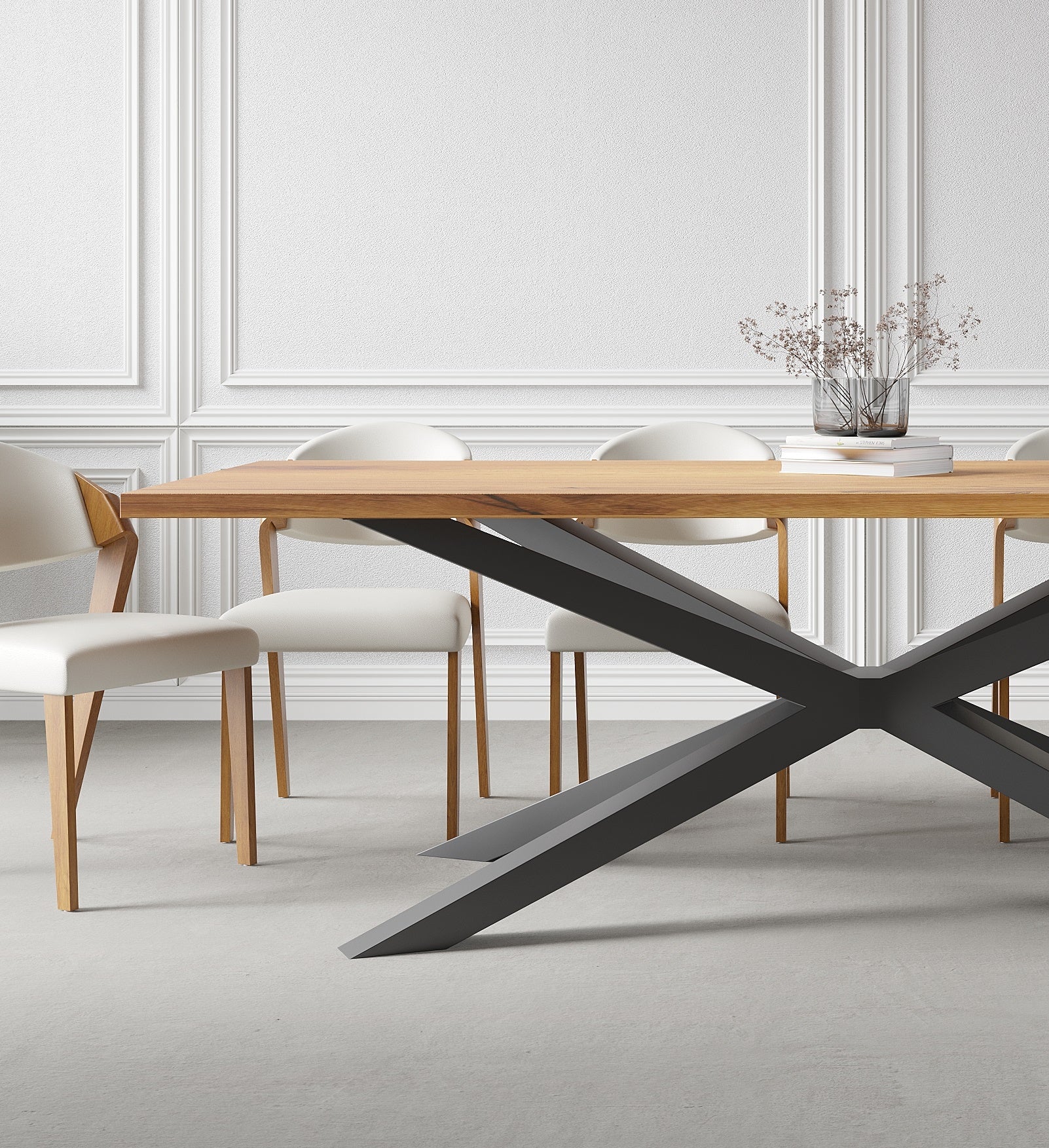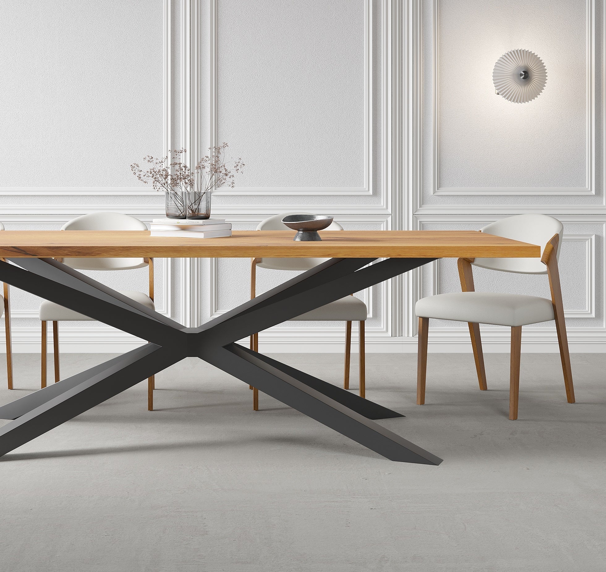 Solid Oak Dining Table with Spider Steel Base – DURABLE HARDWOOD CLAR 082