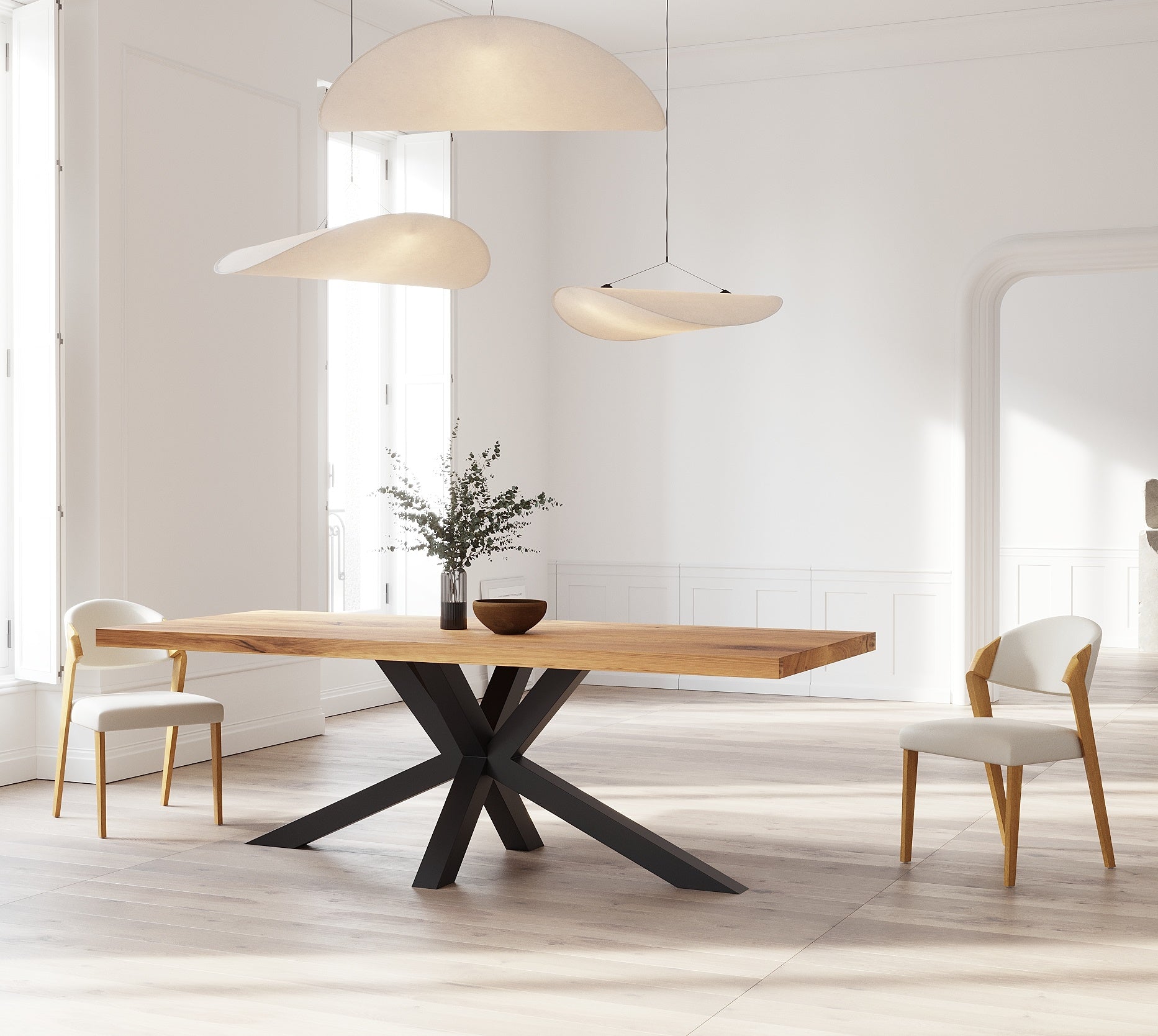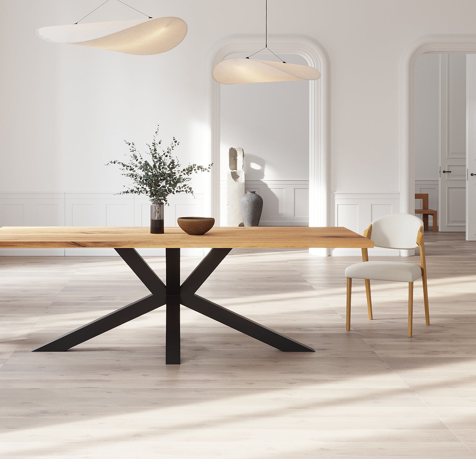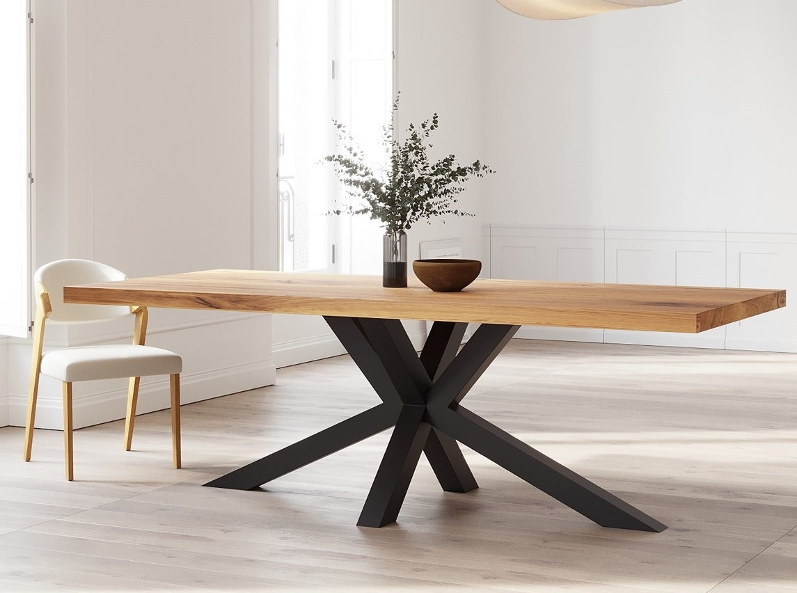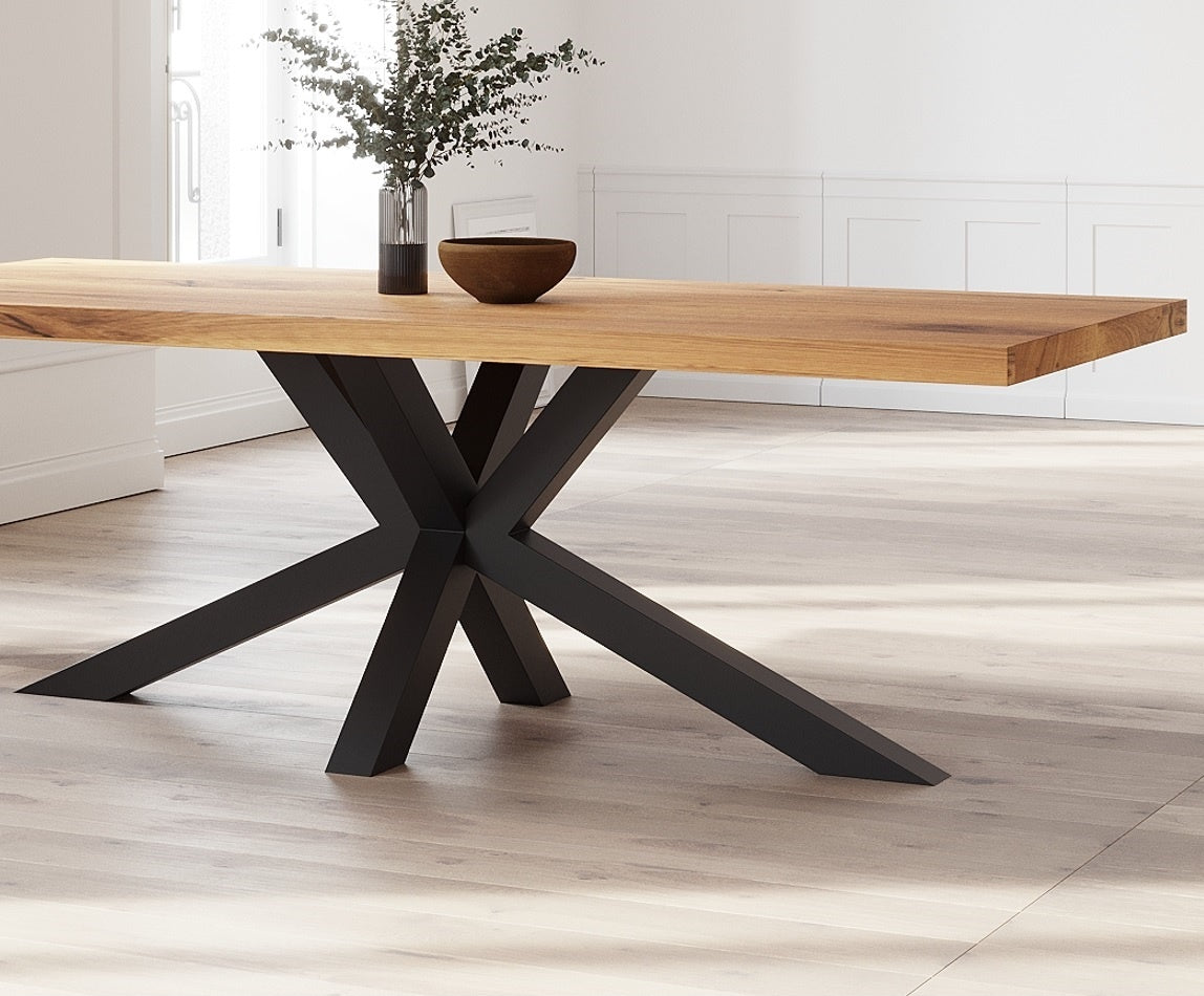 Solid Oak Dining Table with Star Steel Base – DURABLE HARDWOOD CLAR 083