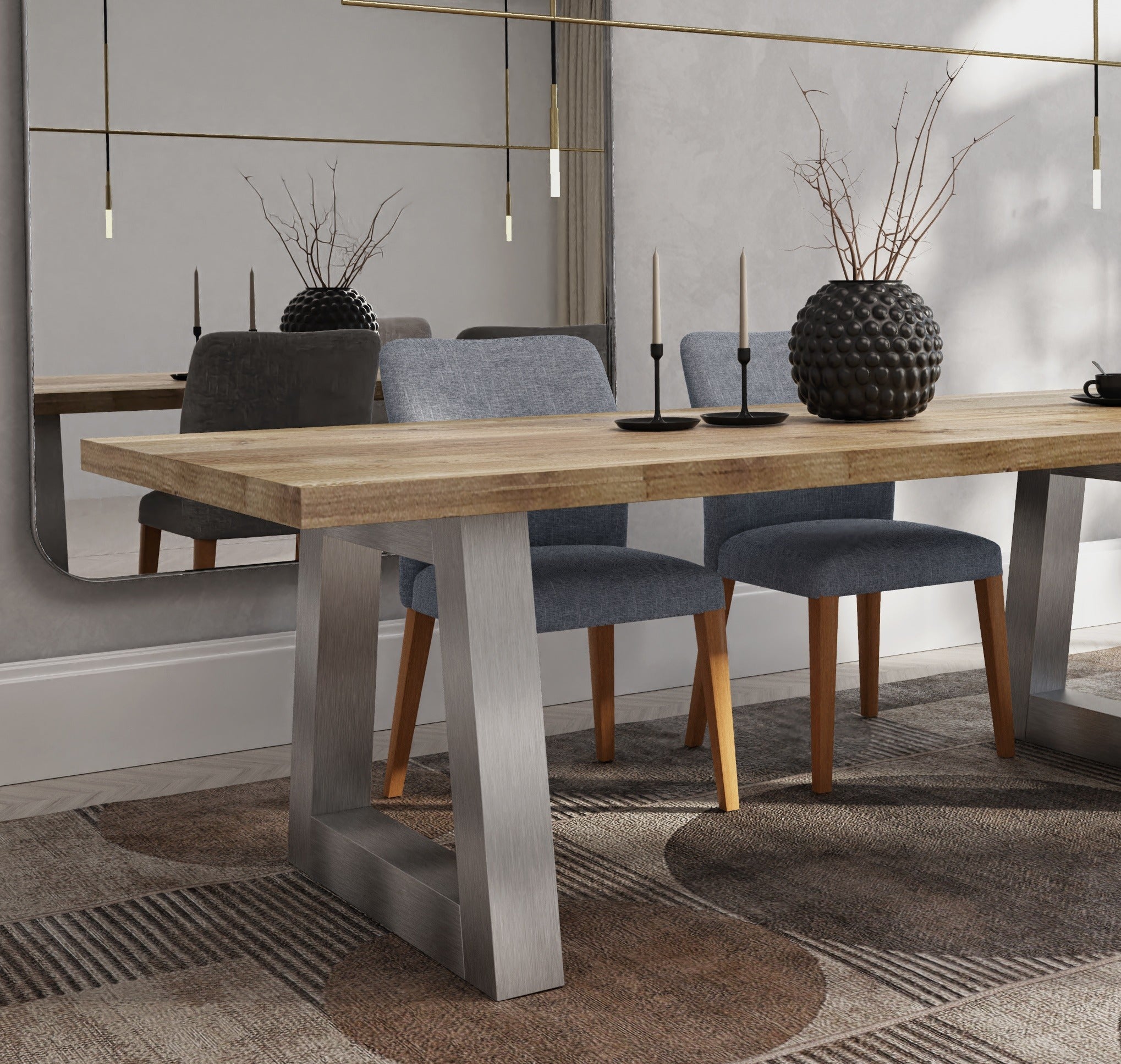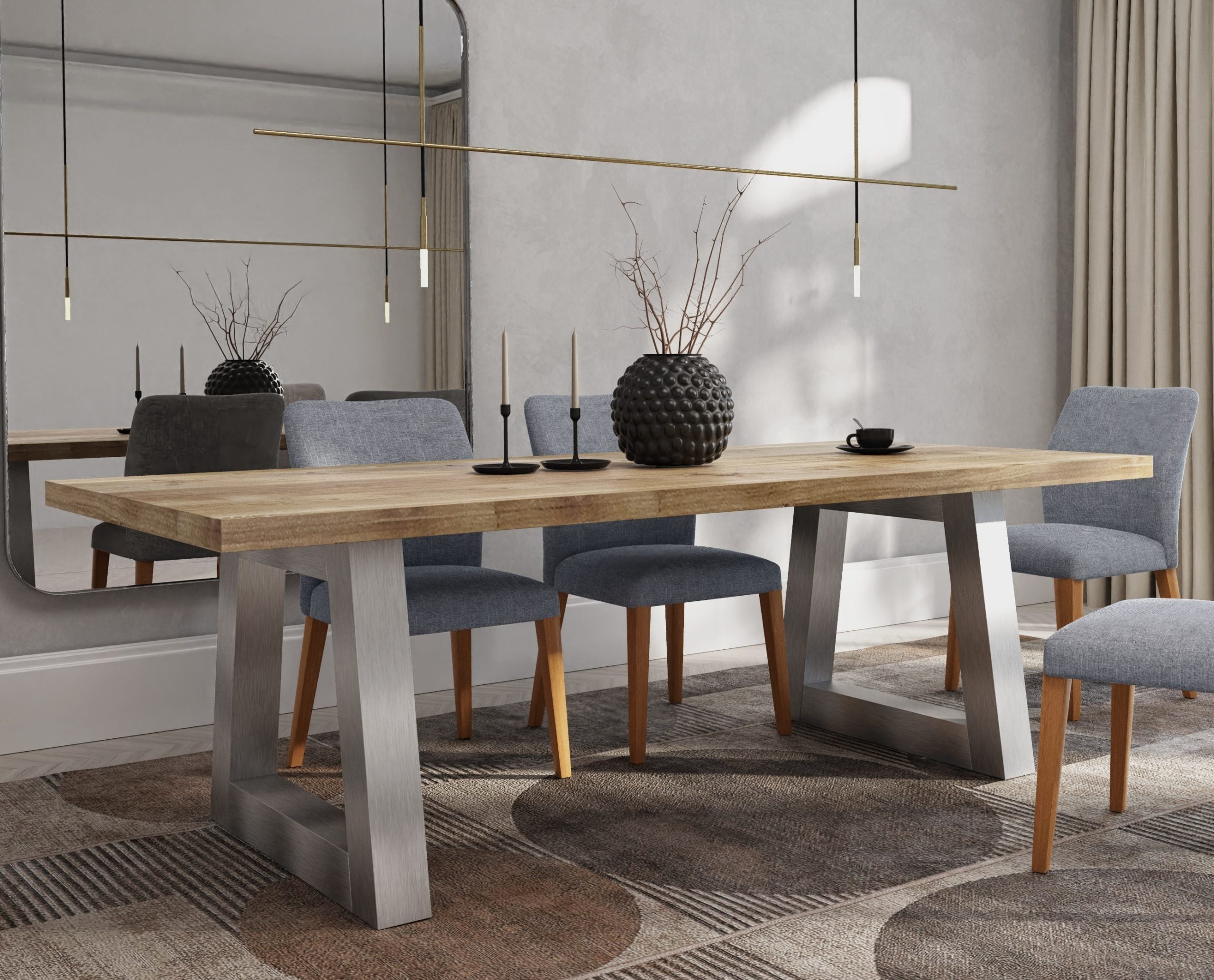 Solid Oak Dining Table Chunky Steel Legs CLAR 015