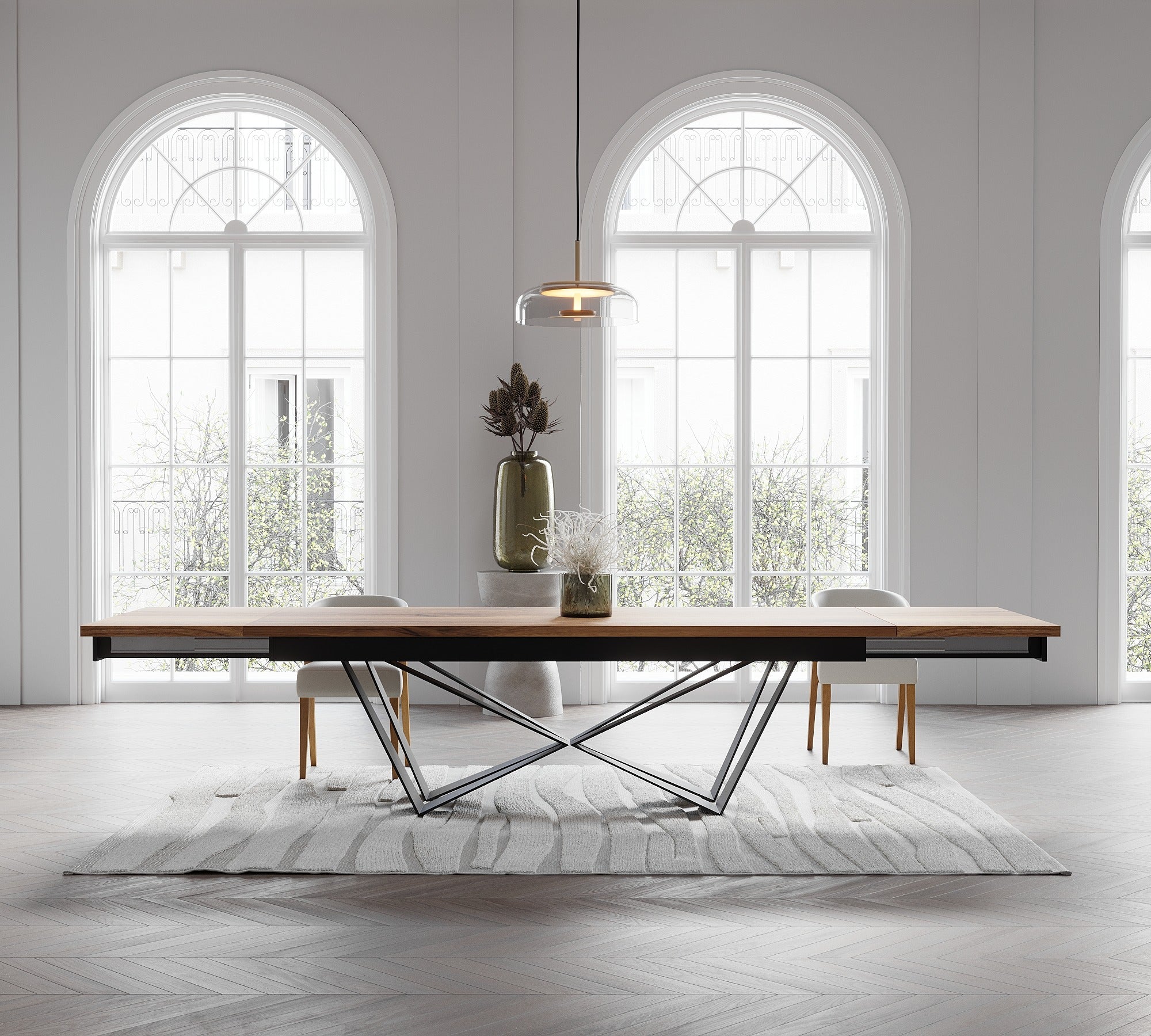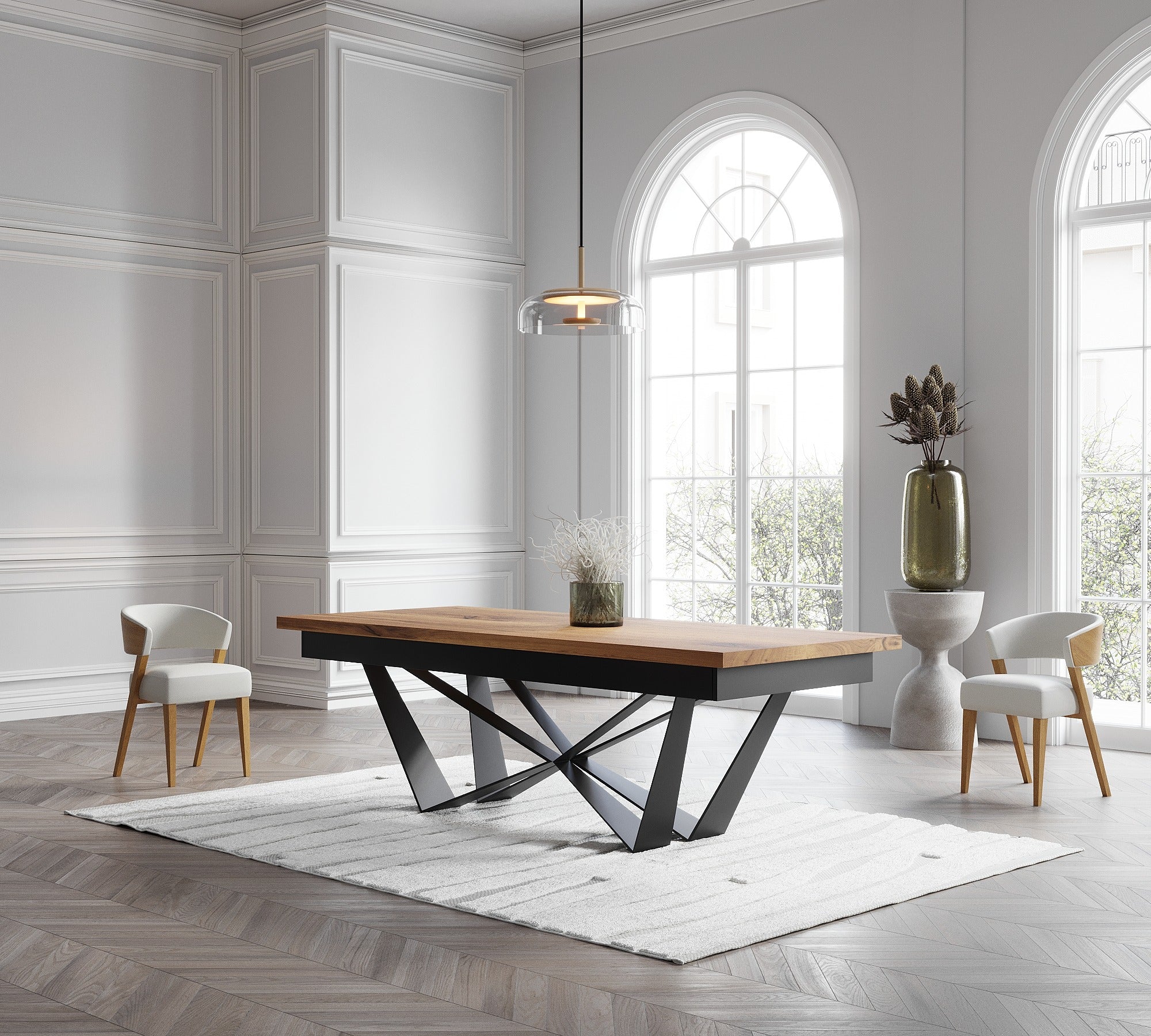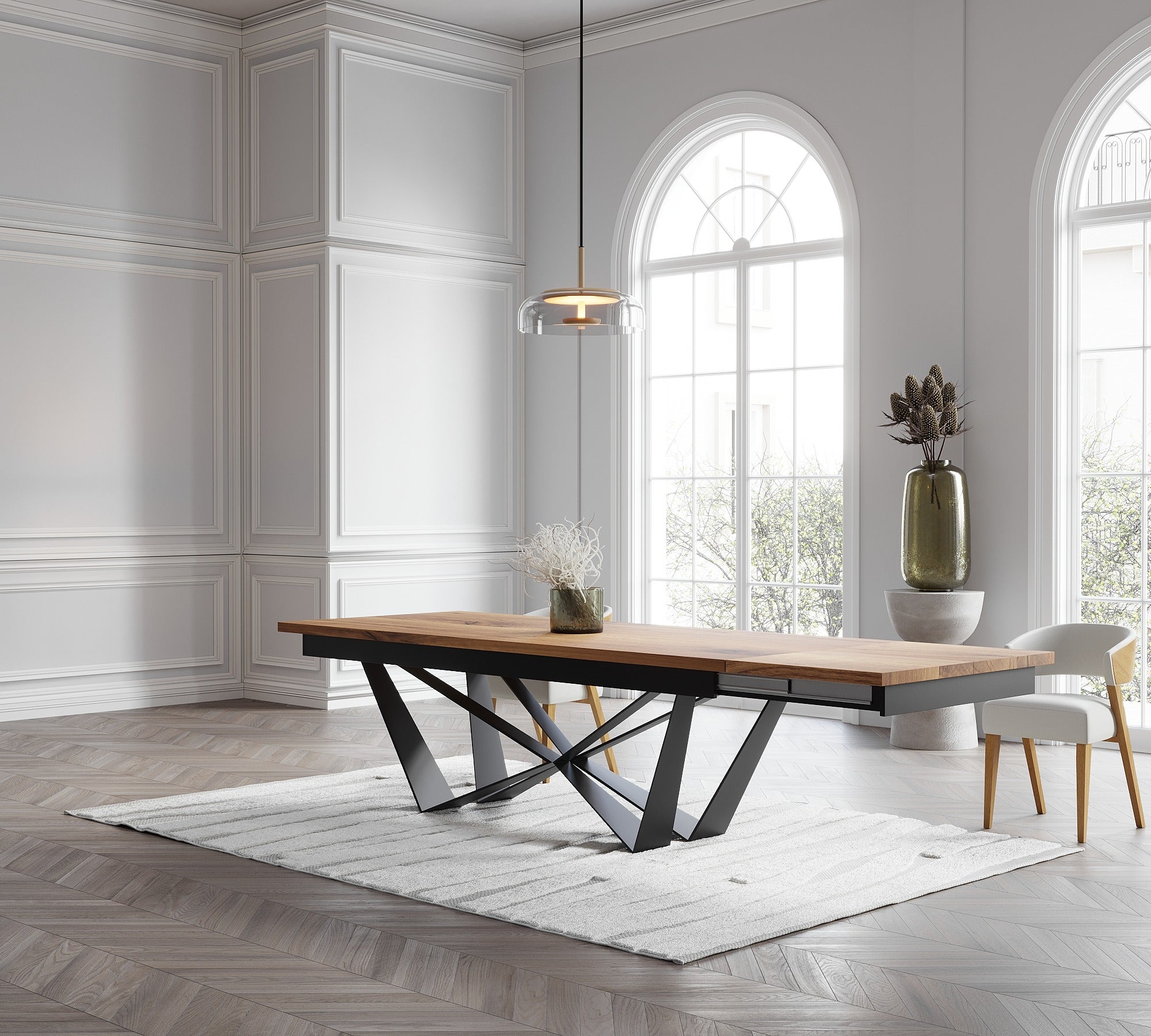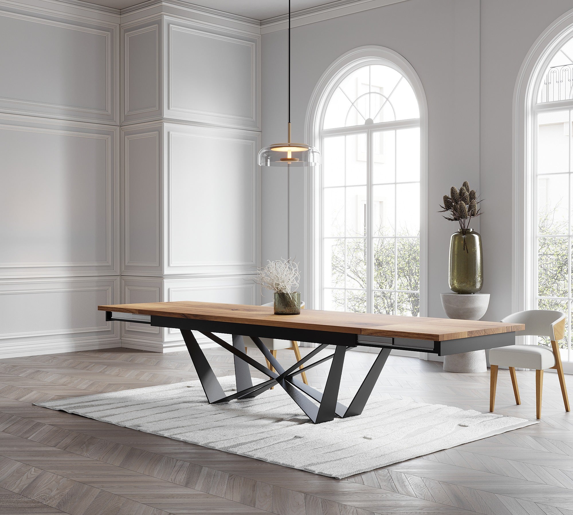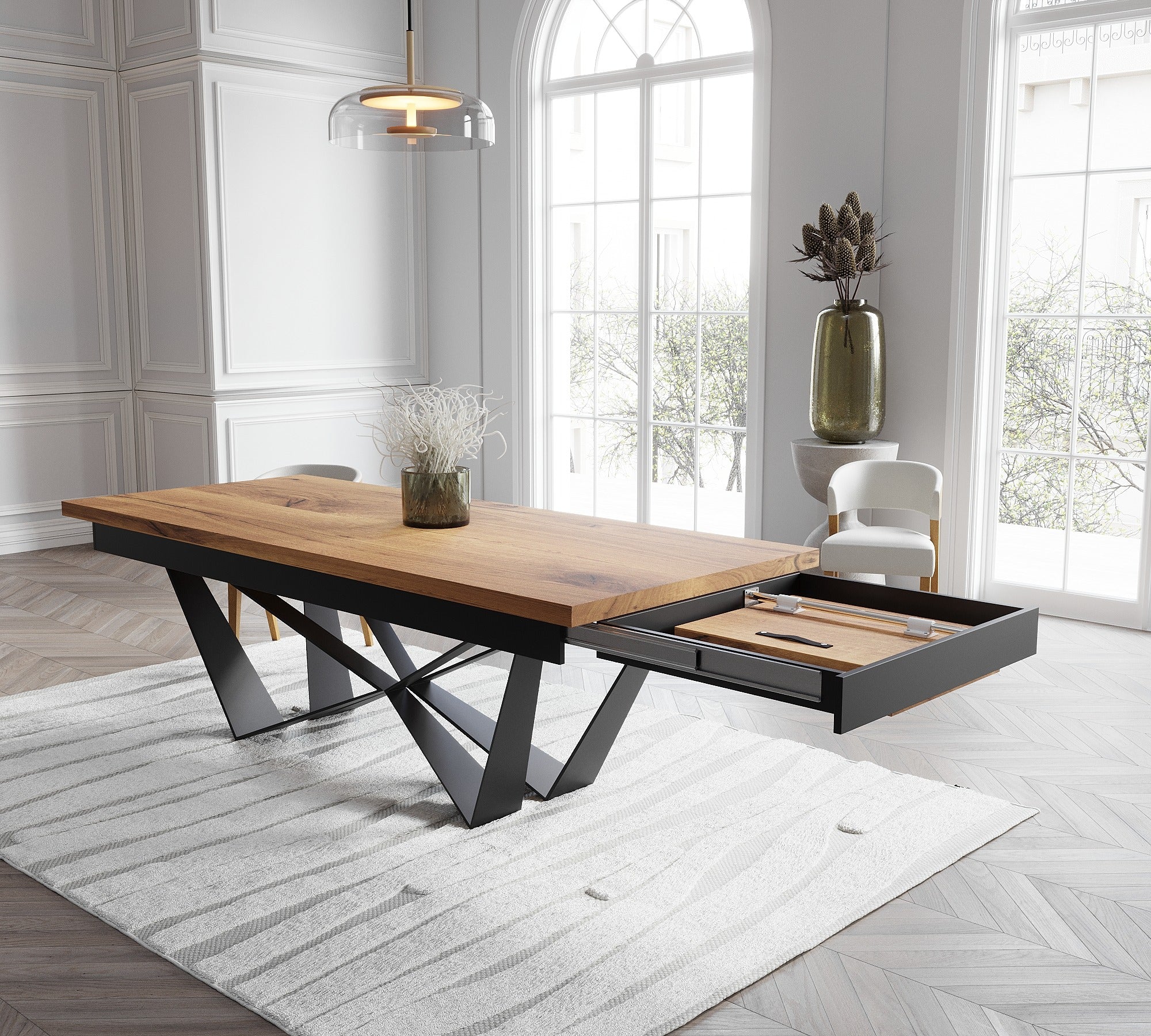 Extendable Solid Oak Dining Table with Scorpio Steel Base