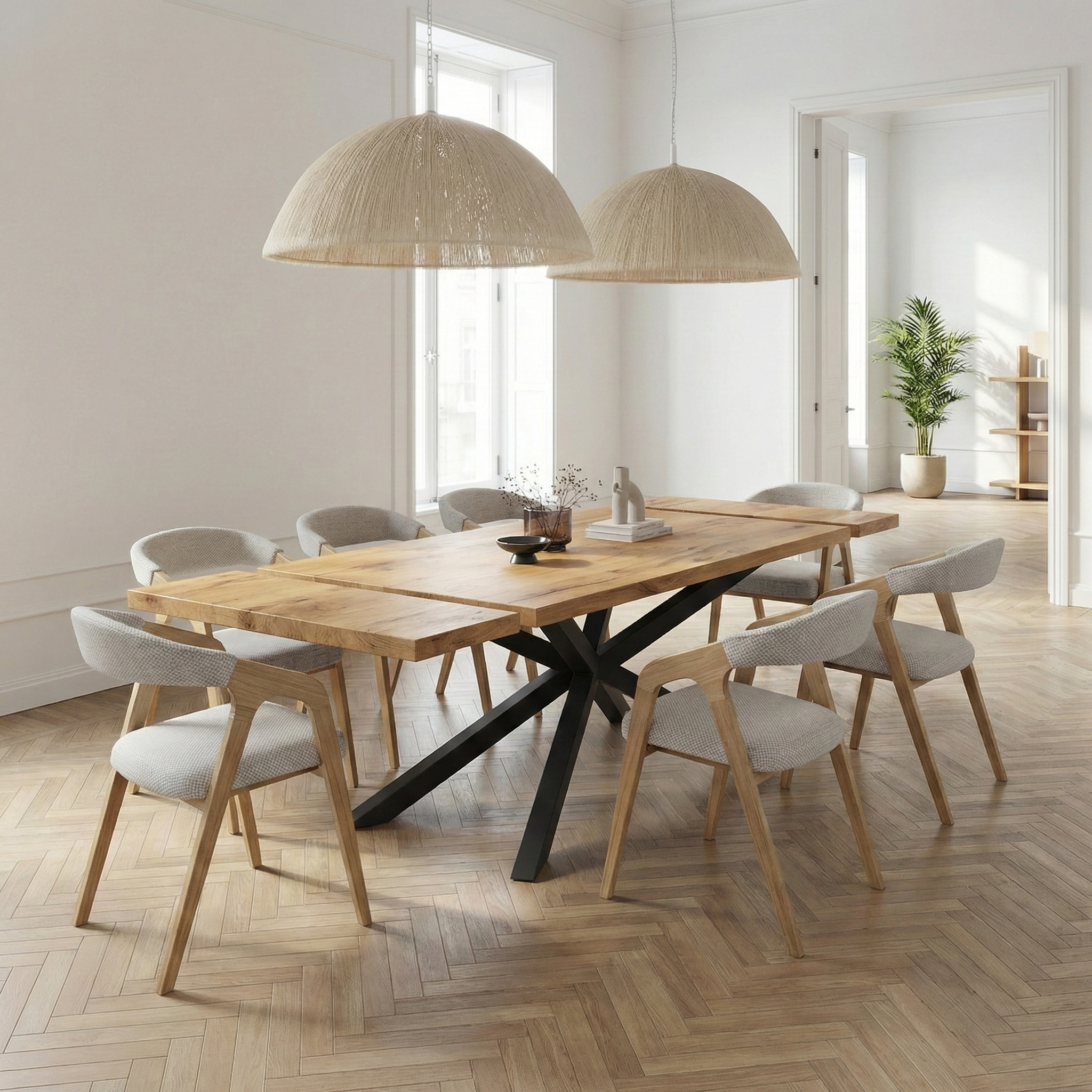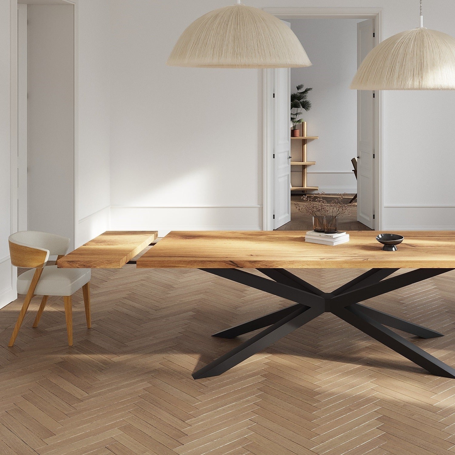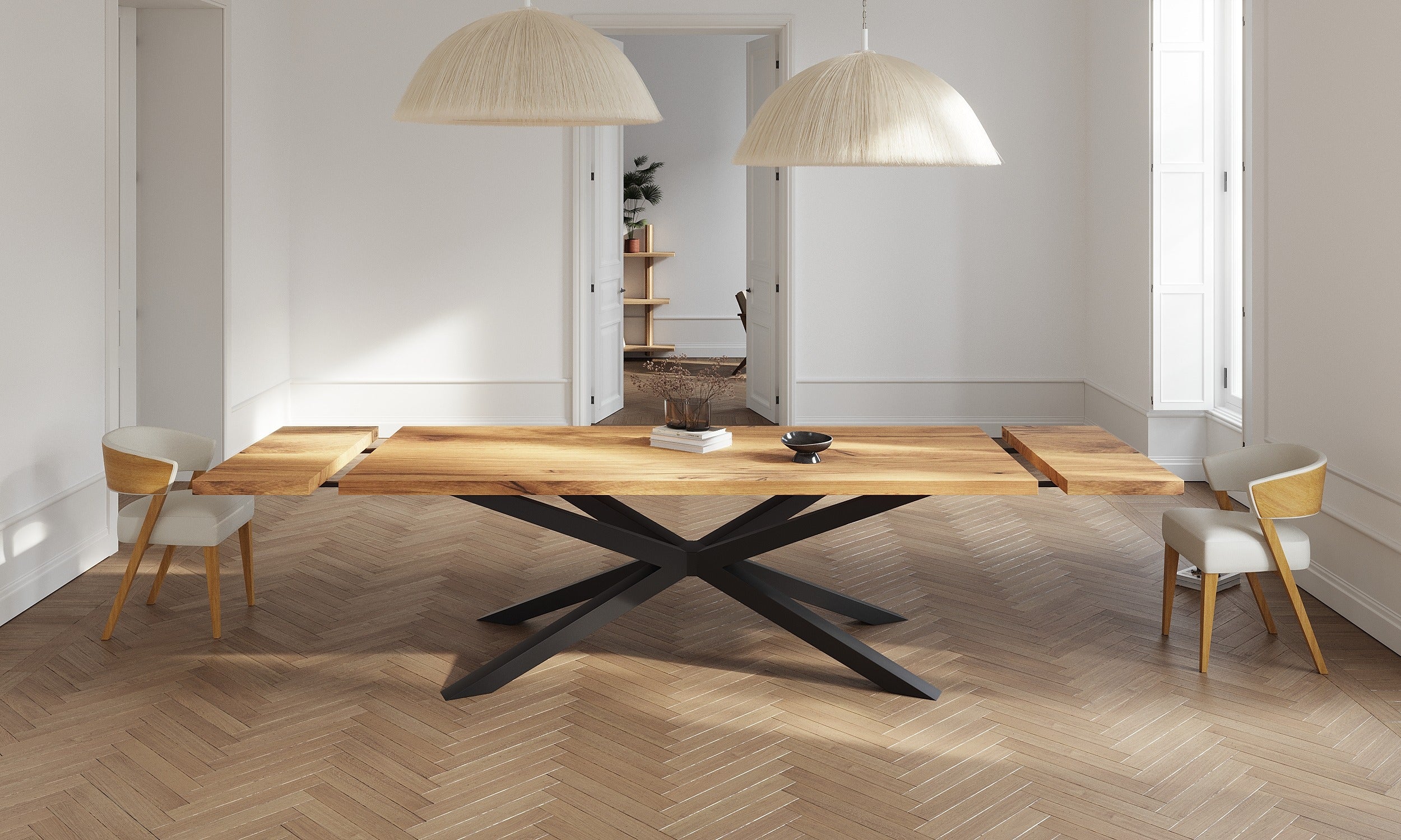 Solid Oak Extendable Dining Table with Spider Steel Base CLAR 094