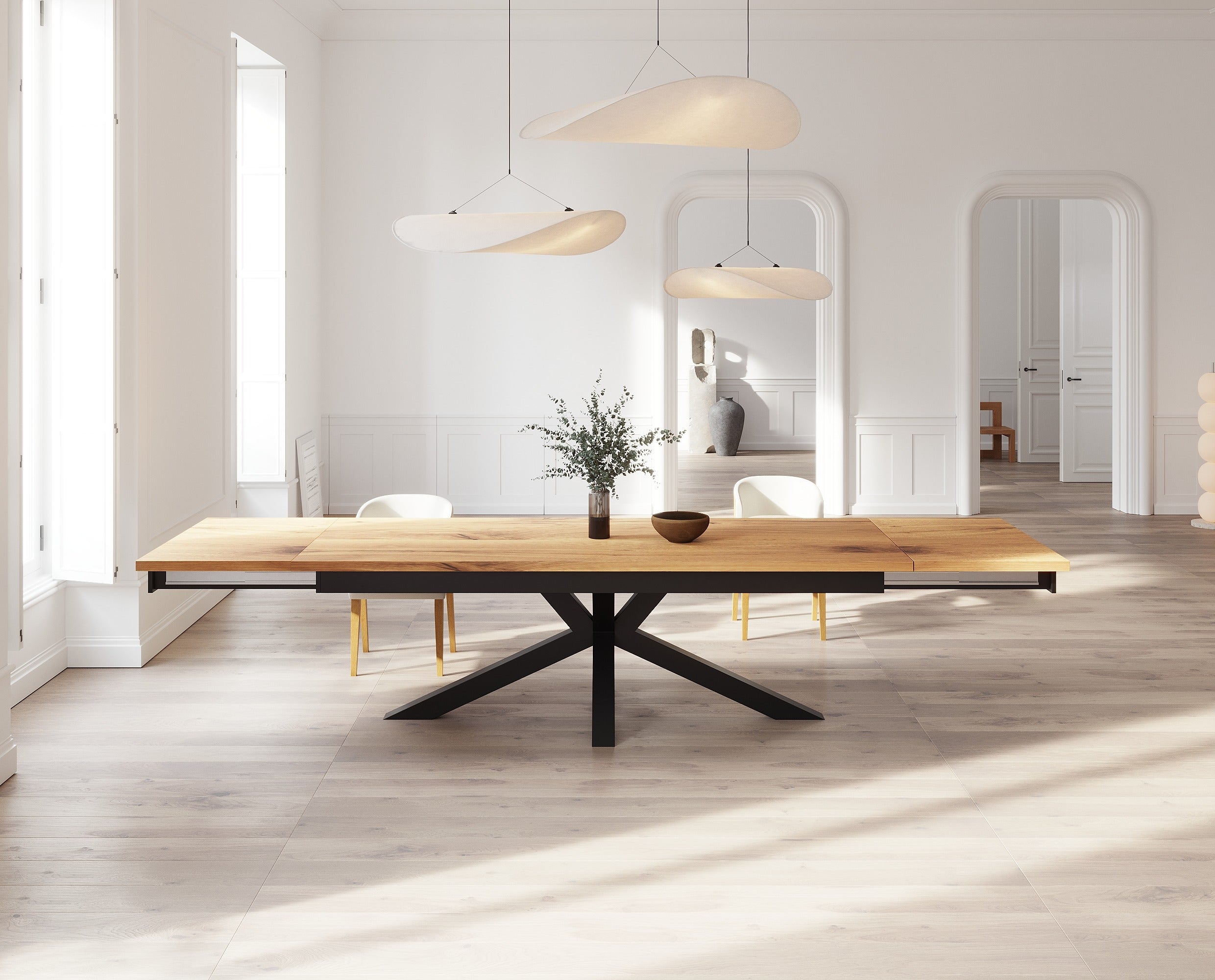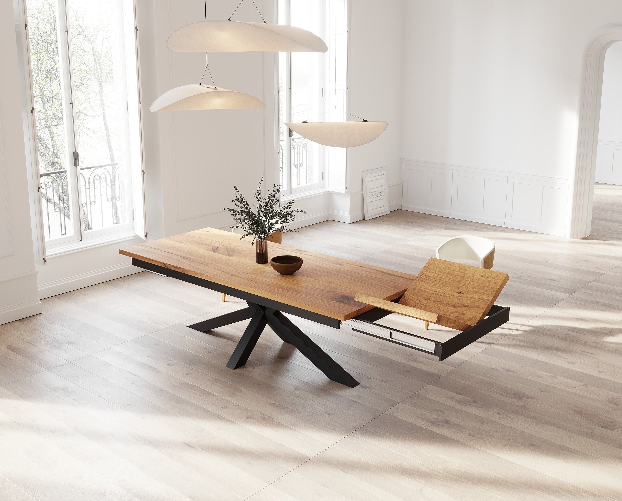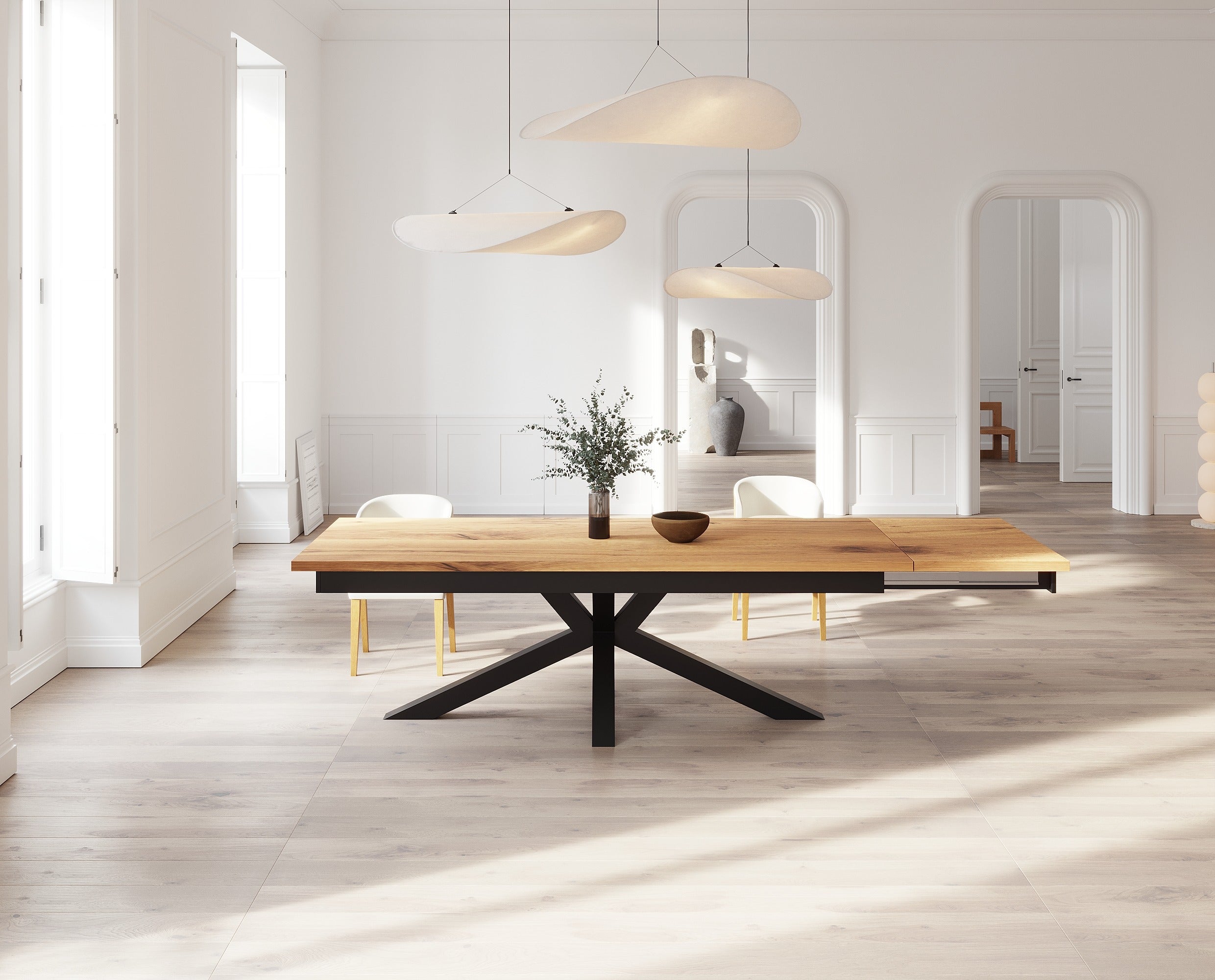 Solid Oak Extendable Dining Table with Star Steel Base CLAR 080