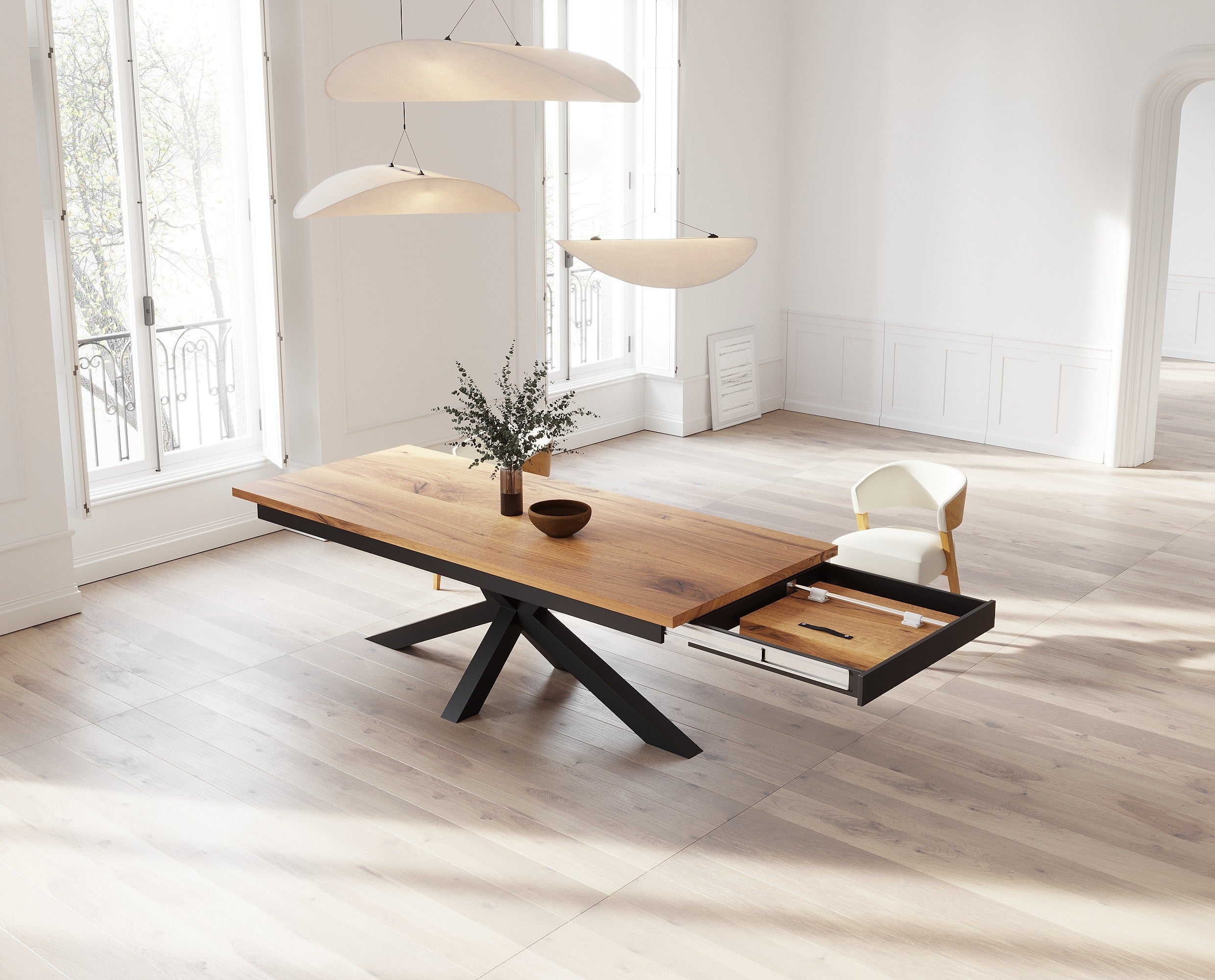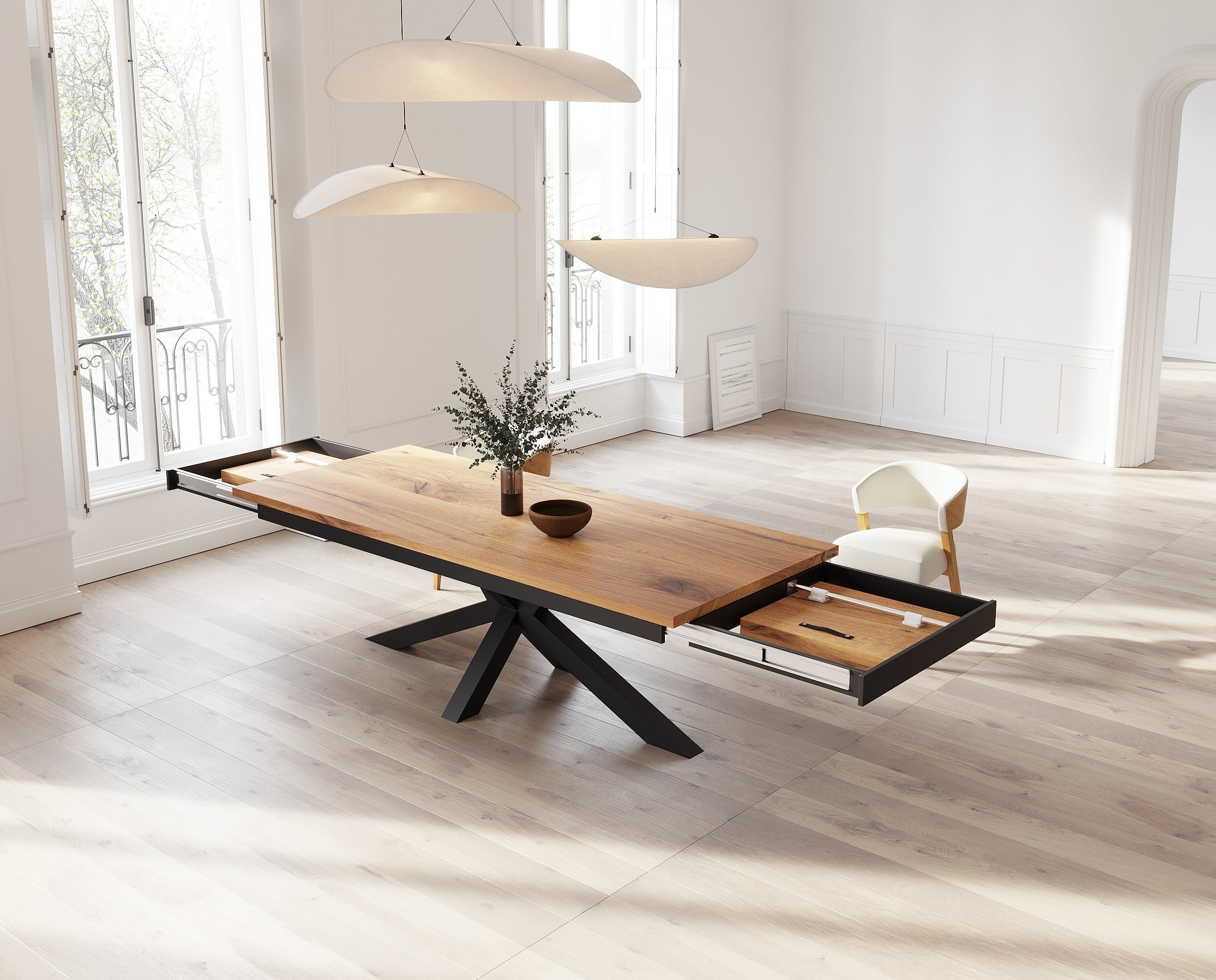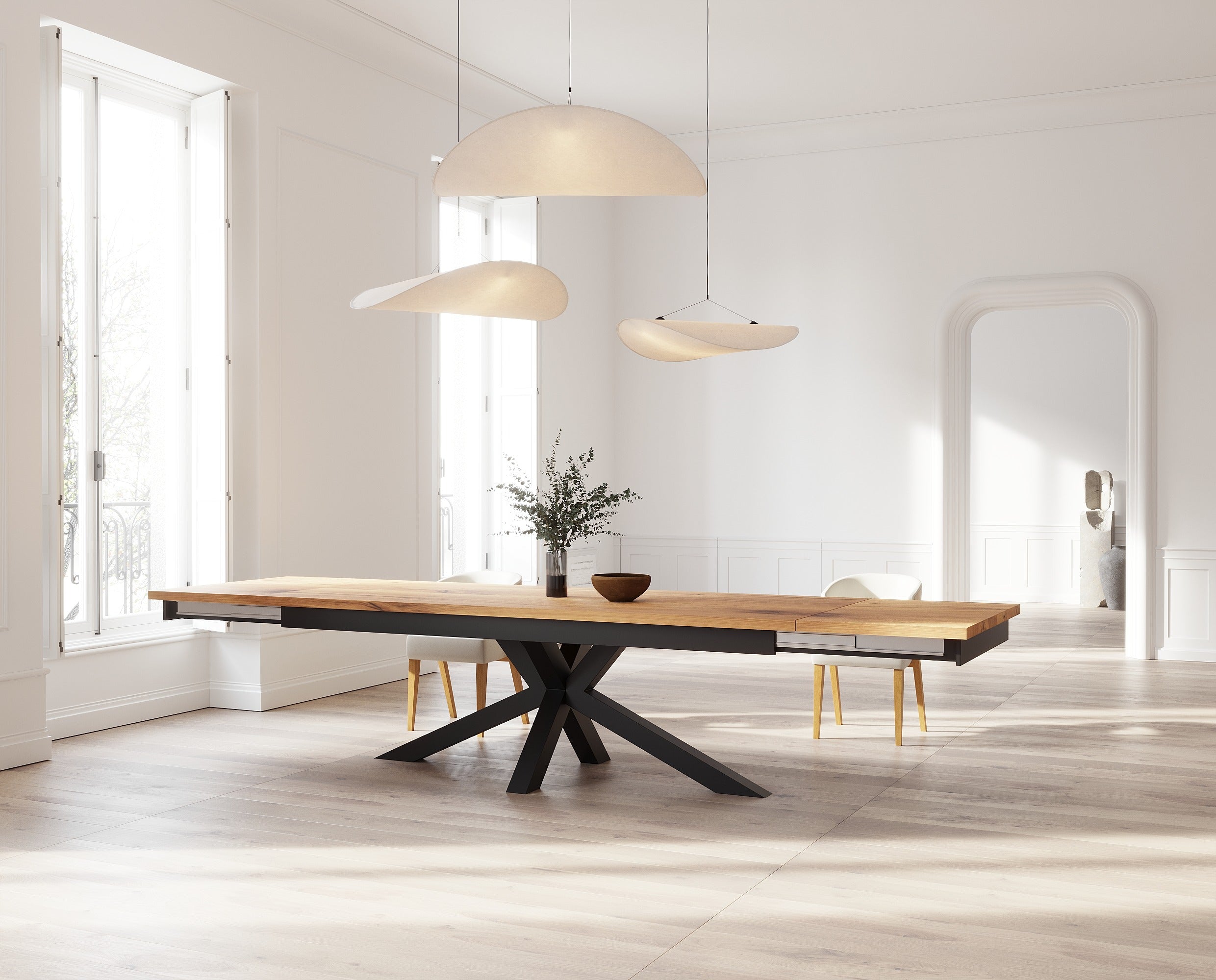 Solid Oak Extendable Dining Table with Star Steel Base CLAR 080