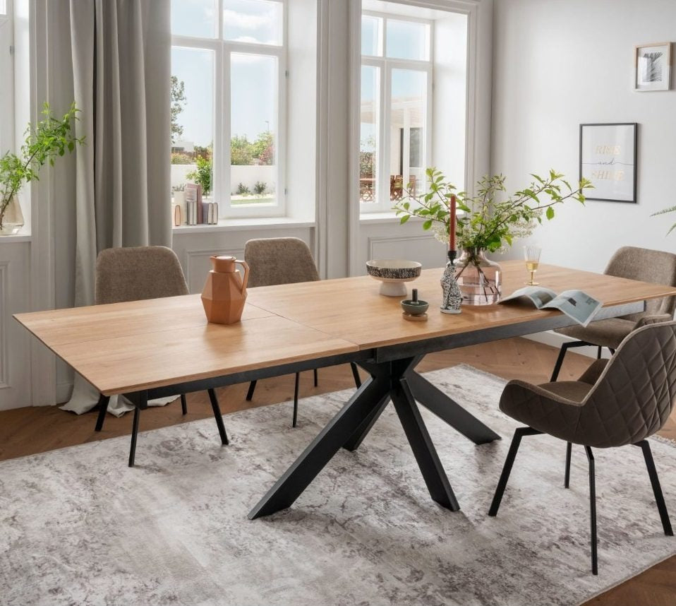 Solid Oak Extendable Kitchen Dining Table with STAR LEGS – Industrial Rustic HARDWOOD Table Clar 040