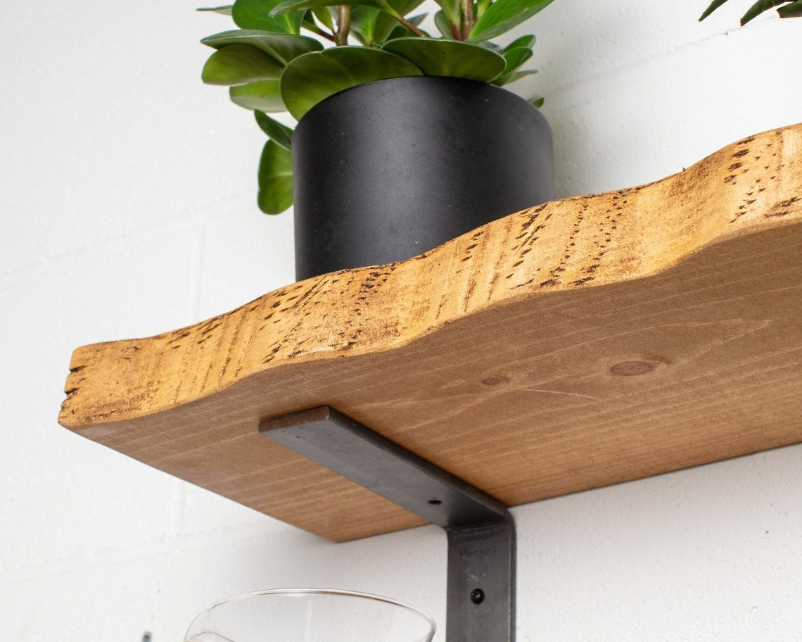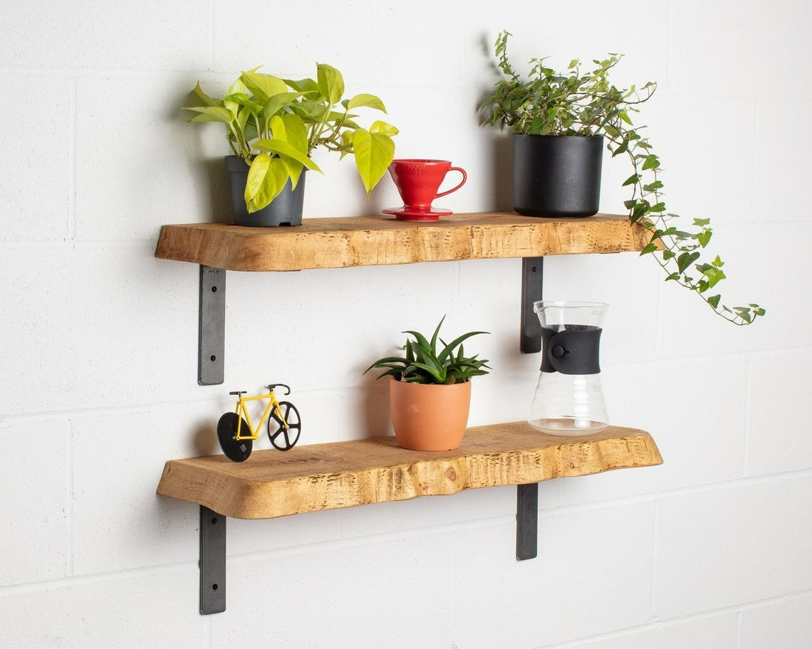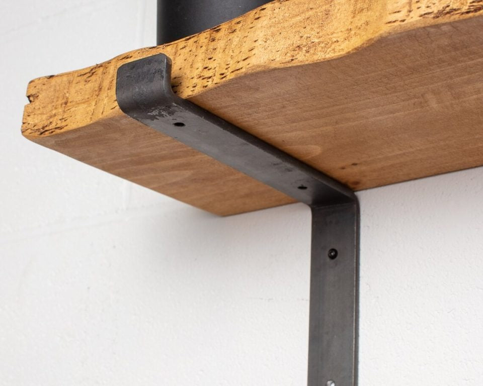 The rustic steel brackets are approximately 18cm high, 22.5cm deep and 5mm thick. The steel is left unfinished, which means rust is likely to develop over time adding to the industrial appearance.