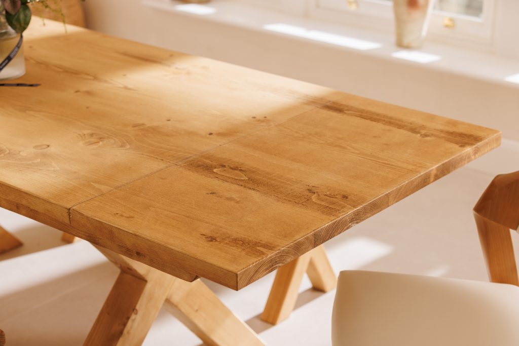 This is our amazing Extendable table, made from Yellow pine. Our tables come protected with a coat of lacquer, this will ensure that you are protected from any stains or messy eaters.These Rustic Dining Tables have been carefully handmade in our Lincolnshire workshop, using only the finest materials.